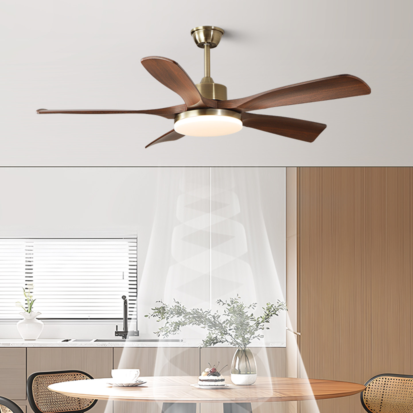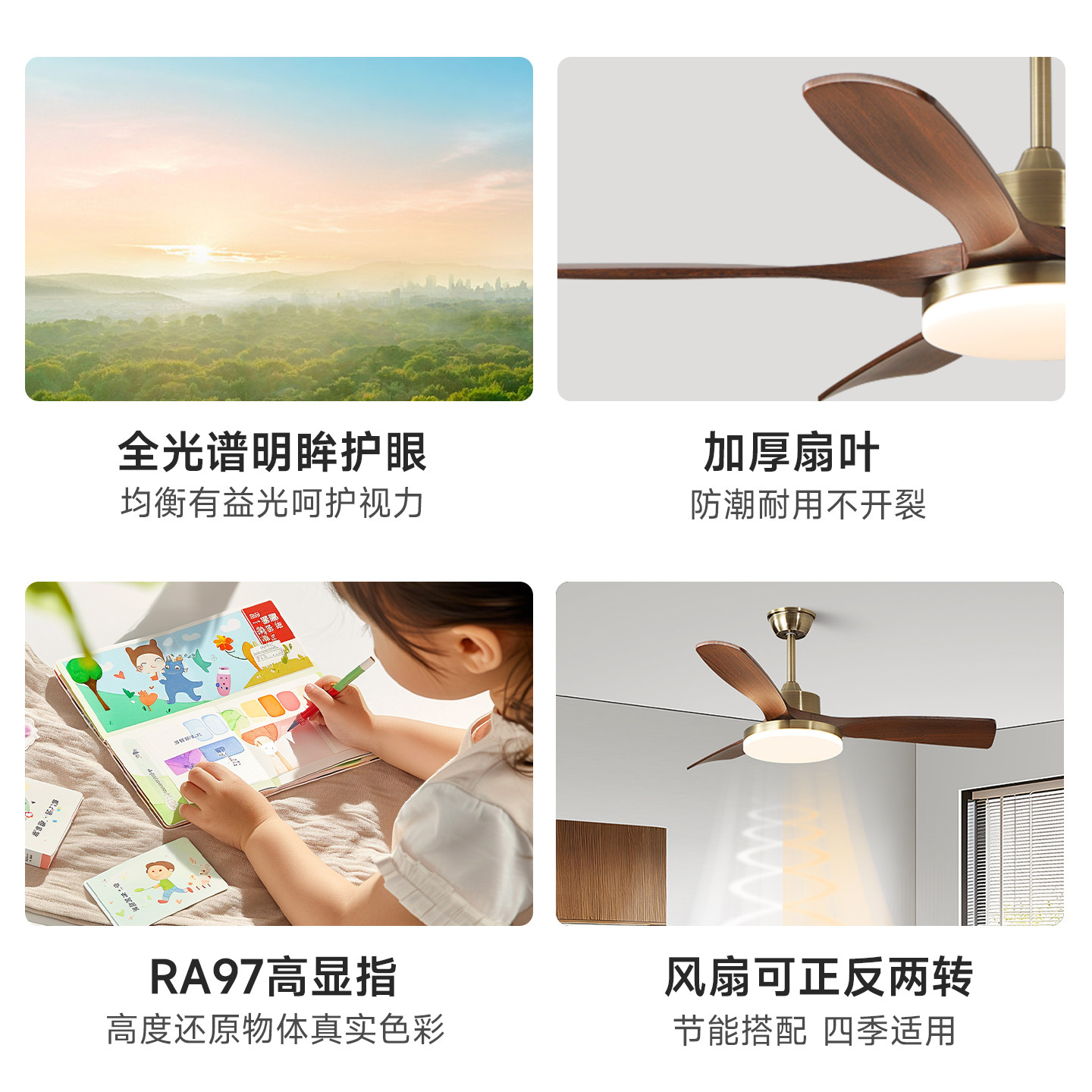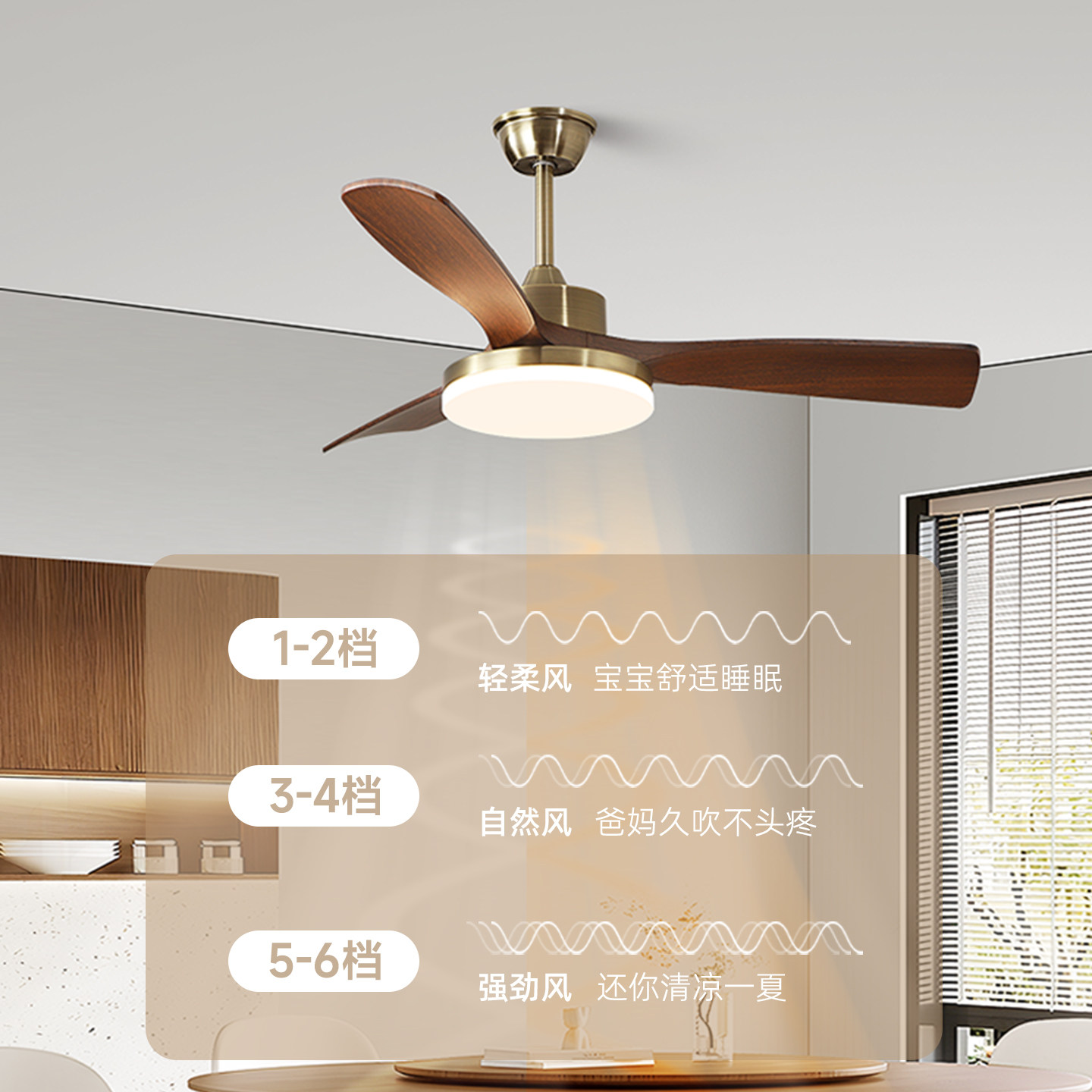 📚 初识灯饰全光谱护眼原木客厅风扇灯实木胡桃木色大风量卧室吊扇灯