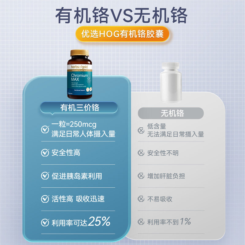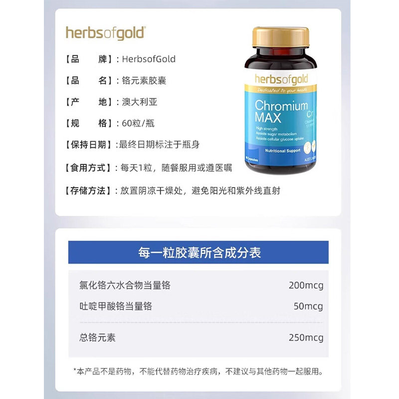 📚 herbsofgold澳洲复合有机铬元素三价铬控糖血糖平衡和丽康60粒