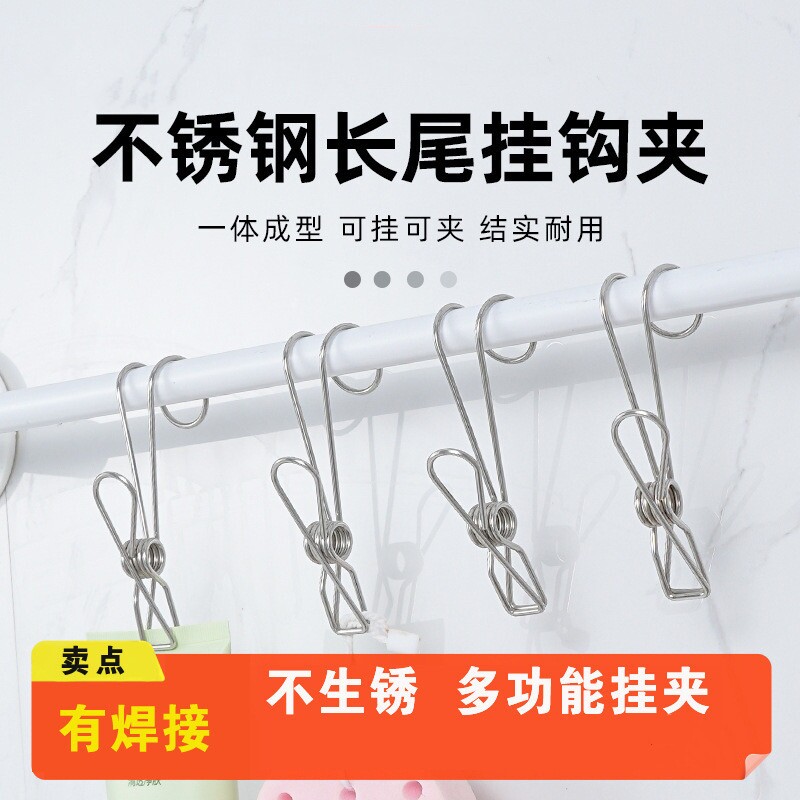📚 厨房浴室毛巾悬挂收纳不锈钢夹子挂钩文具零食照片小夹子长尾夹