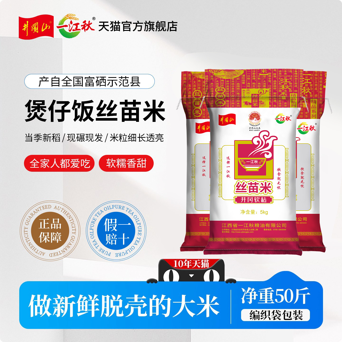 📚 【50斤组合装】一江秋井冈山煲仔饭丝苗米2025年新米5kg大米50斤