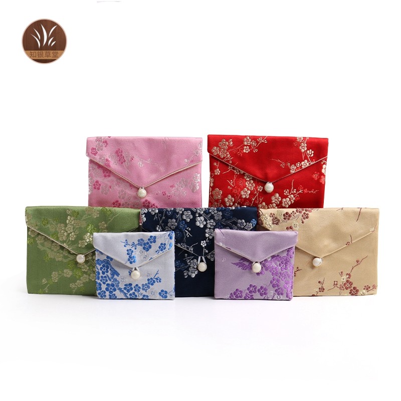📚 首饰收纳袋梅花翻盖纽扣包包小布袋复古锦缎刺绣小号中号大号文玩