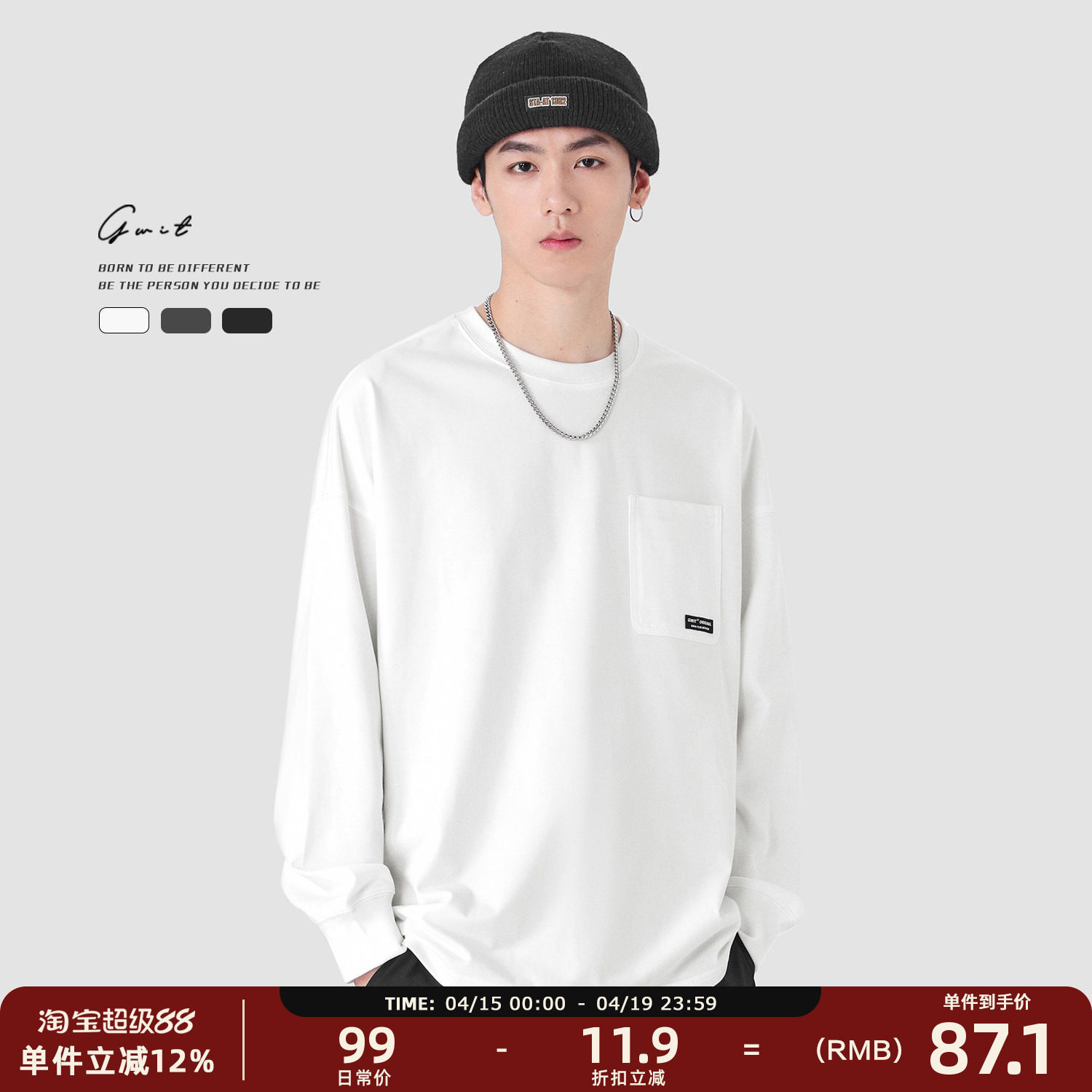 #GWIT #美式重磅宽松 #春秋纯棉 #内搭口袋体恤打底衫 #男款T恤 #券后价好物 #春季好物