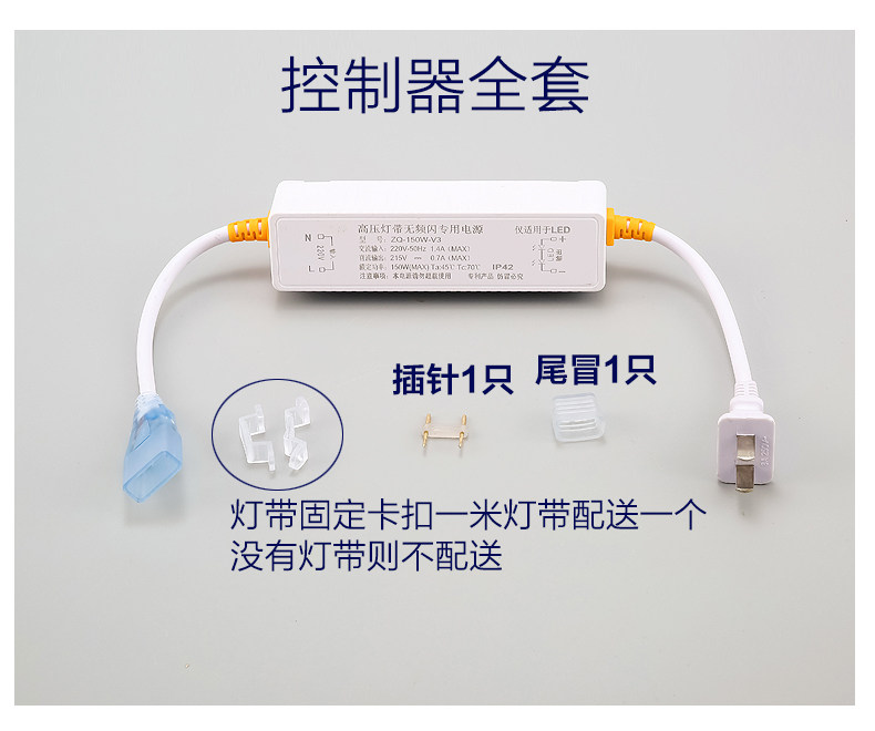 📚 高压灯带无频闪驱动插头电源控制器220v灯带无导线单色镇流器两针