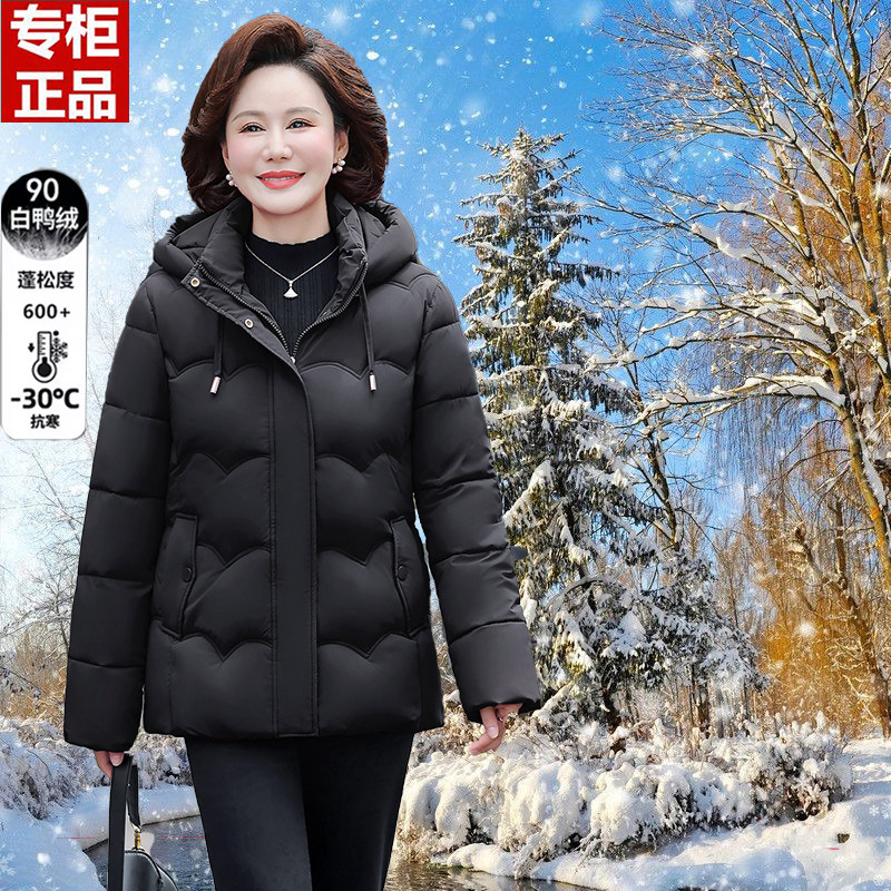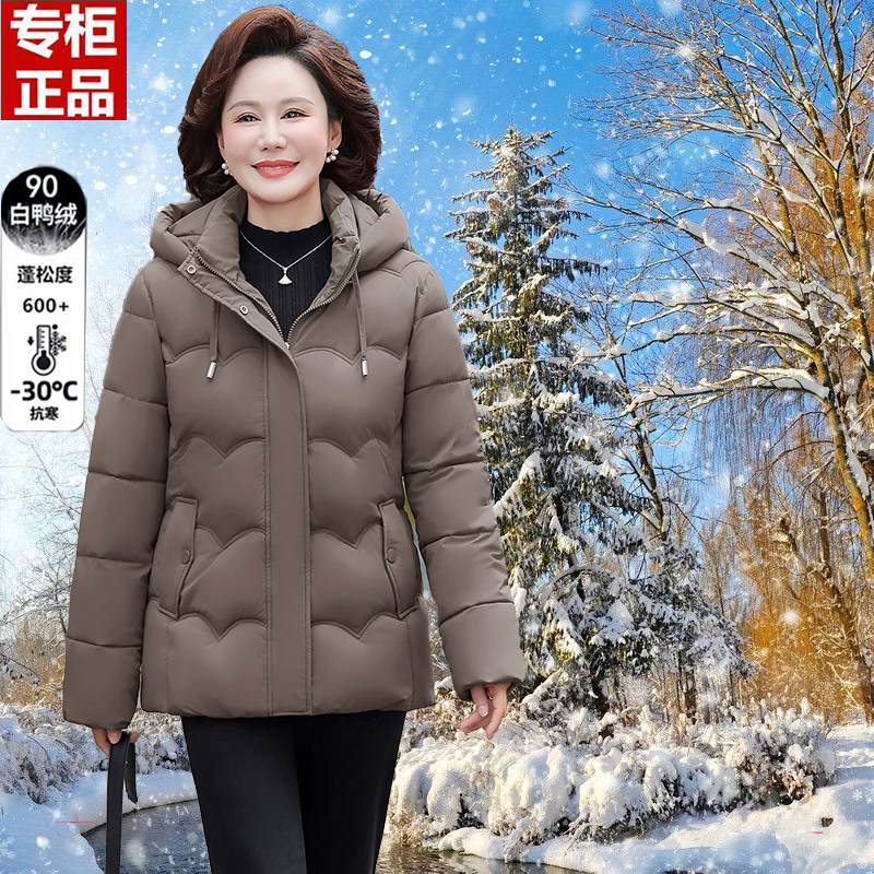 📚 品牌专柜正品中老年女装白鸭绒羽绒服中长款加厚防寒妈妈冬装外套
