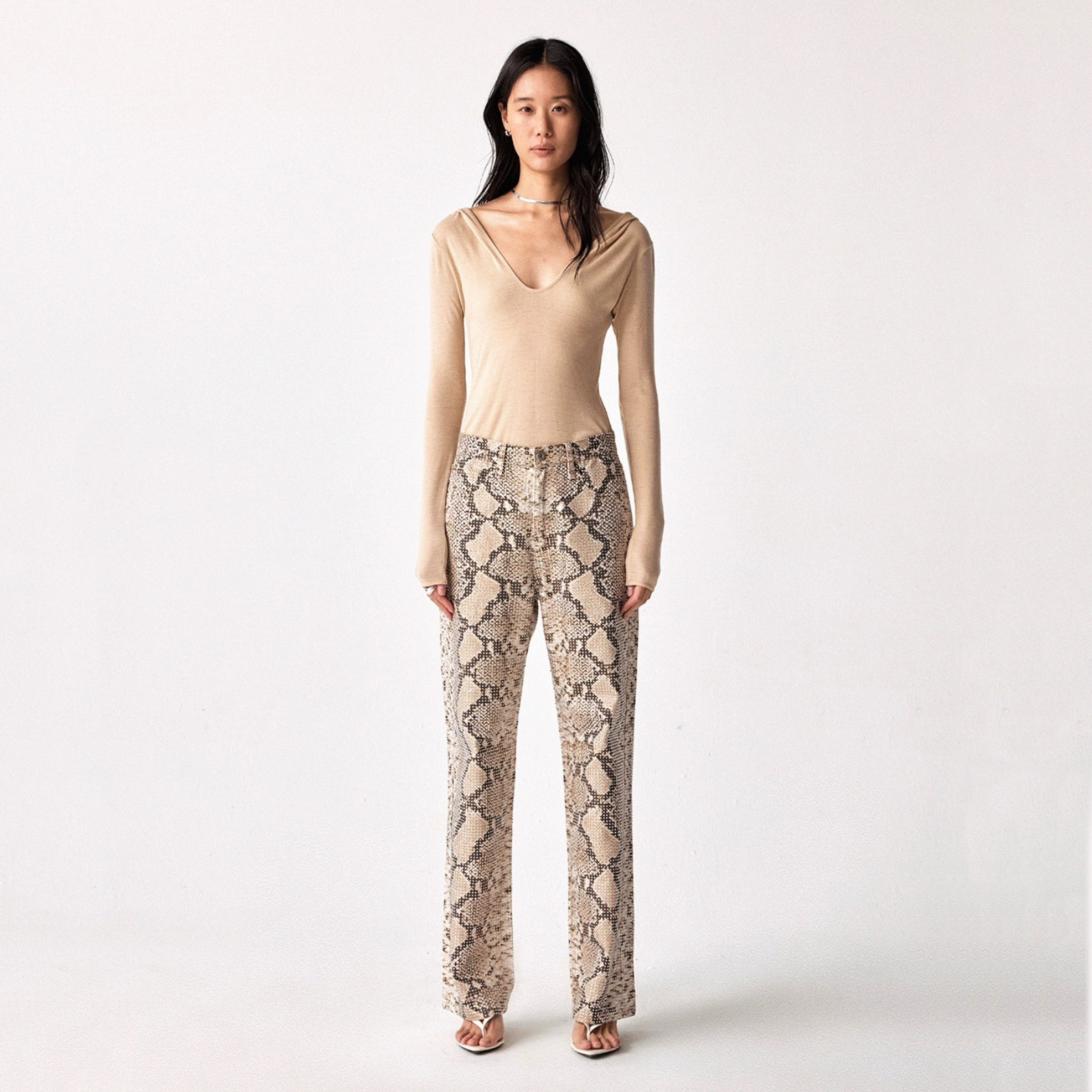📚 DUE E CHEN Diamond Denim 蛇纹烫钻直筒牛仔裤 |四季可穿