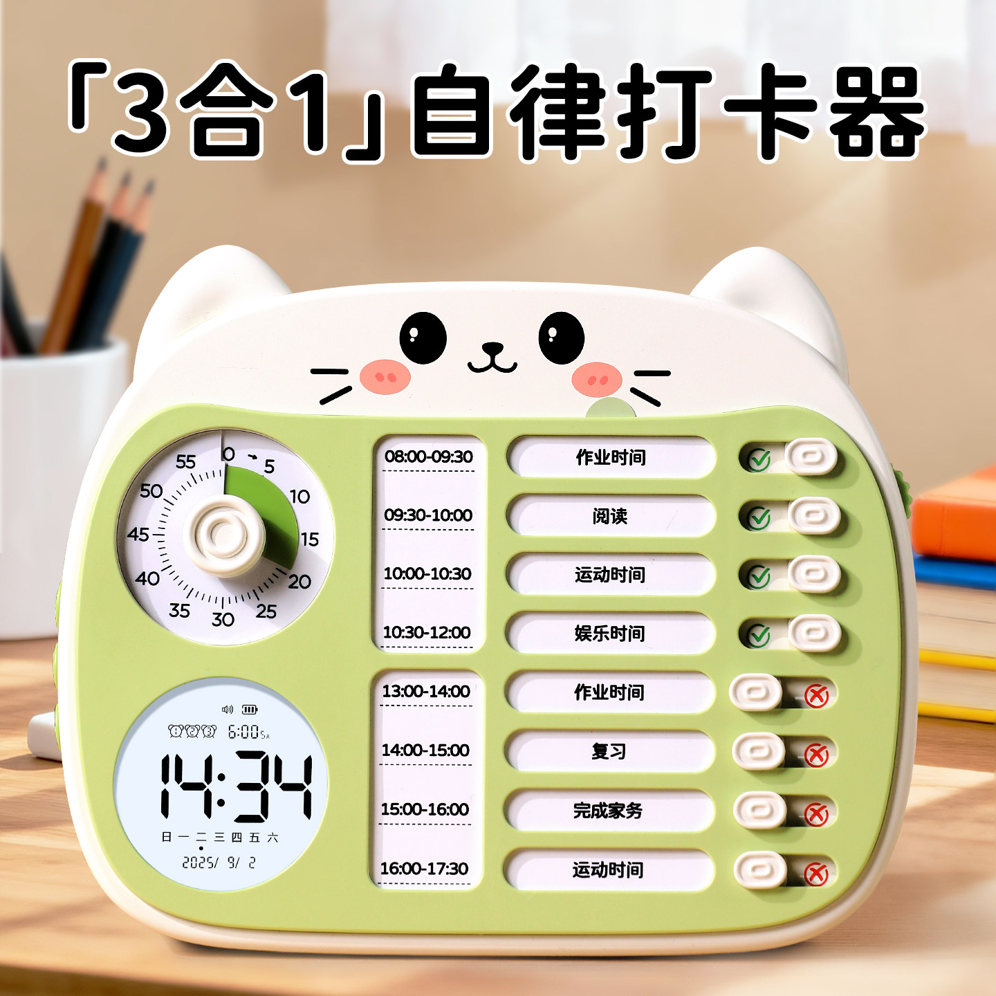 📚 倒计时器小学生学习自律专用神器可爱儿童闹钟计划表打卡器三合一