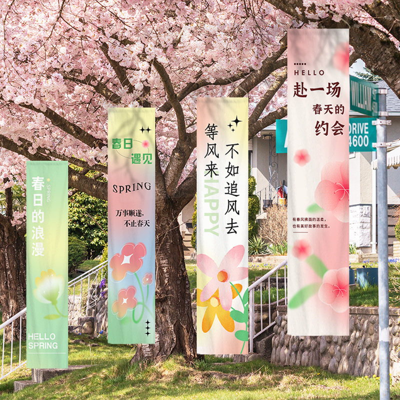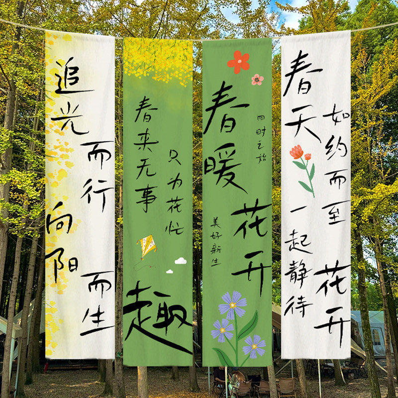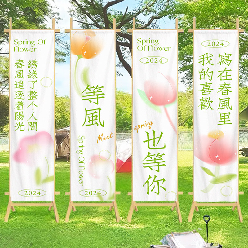 📚 春天主题户外氛围装饰挂布春季市集小院长条幅户外打卡拍照背景布
