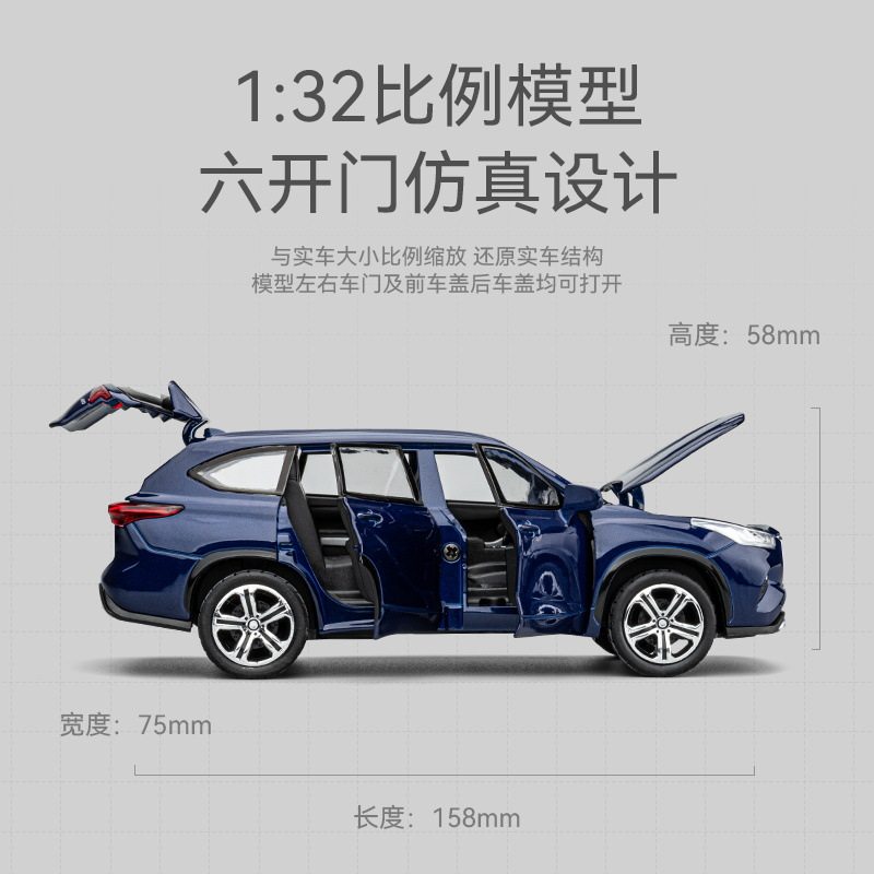 📚 嘉业1:32丰田汉兰达六开门声光回力合金车模型男孩小汽车玩具摆件