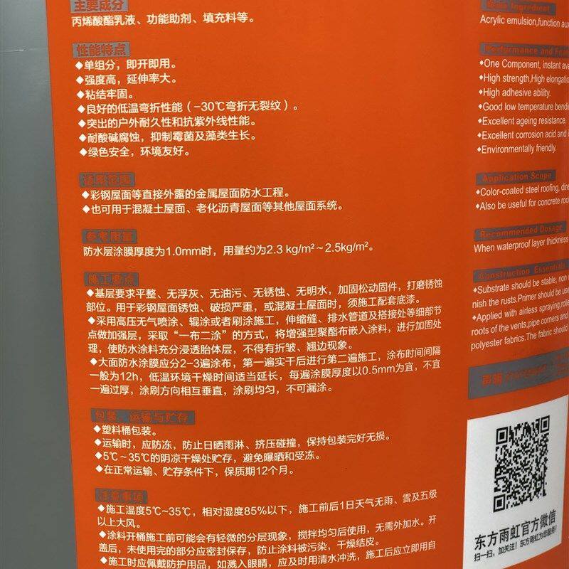📚 东方雨虹屋面丙烯酸HCA108高弹隔热抗裂彩钢瓦屋顶室外墙防水涂料