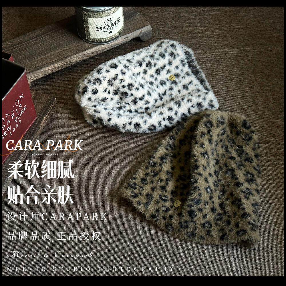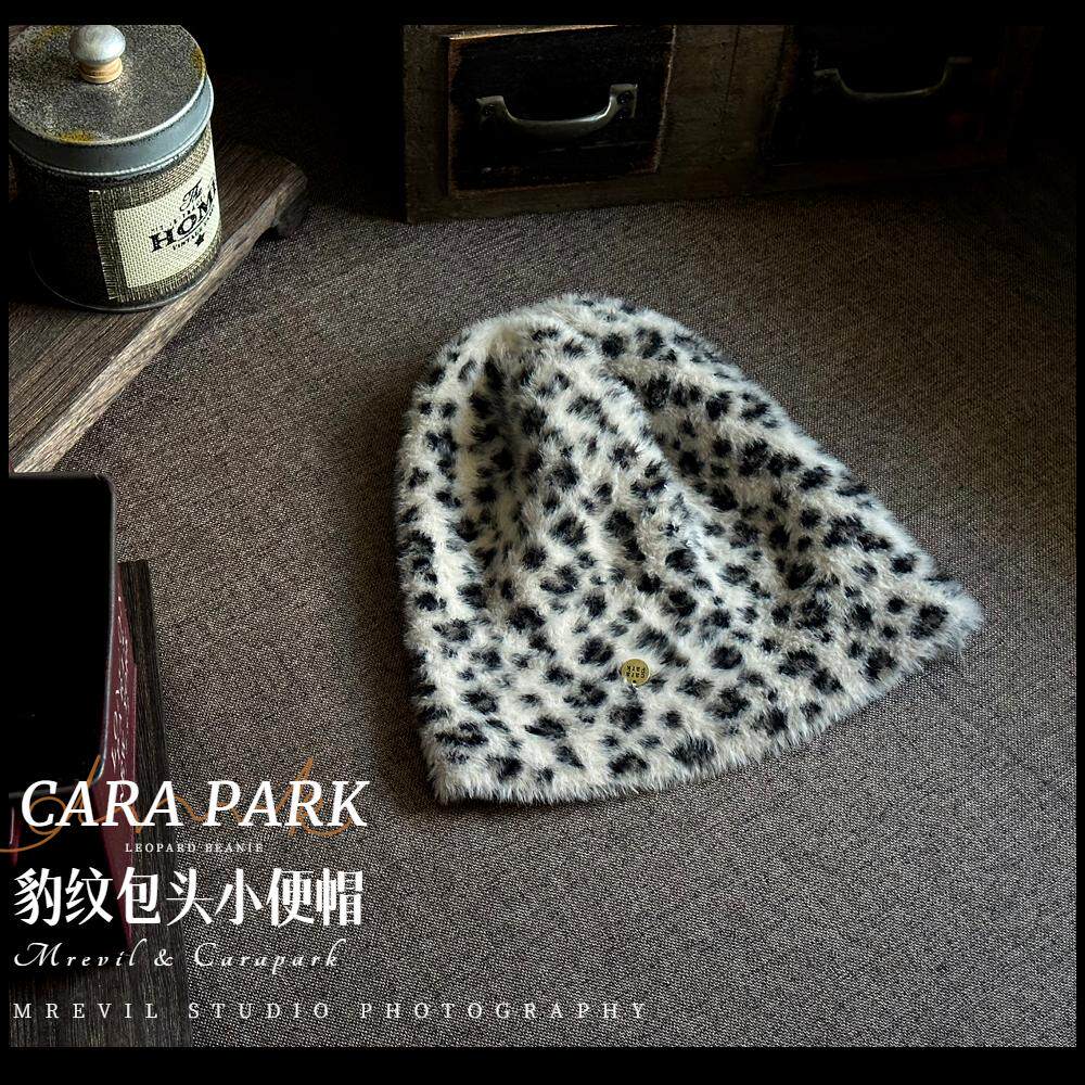 📚 细腻柔软CARAPARK设计师豹纹无檐小便帽气质女秋冬日系包头毛线帽