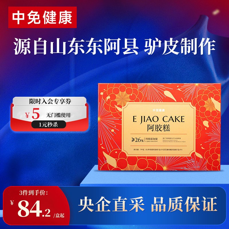 📚 中免健康阿胶糕200g即食送父母长辈女友手工阿娇膏气血补品礼盒装