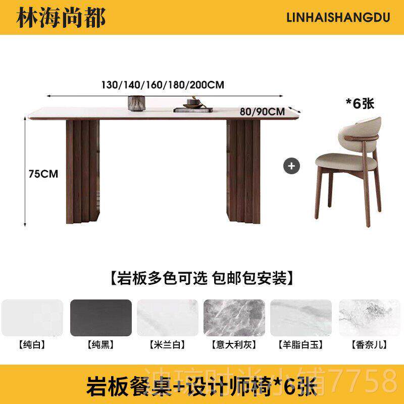 📚 新款实木岩板餐长形家用轻奢桌简约现代胡2桃木色方中古风024新款