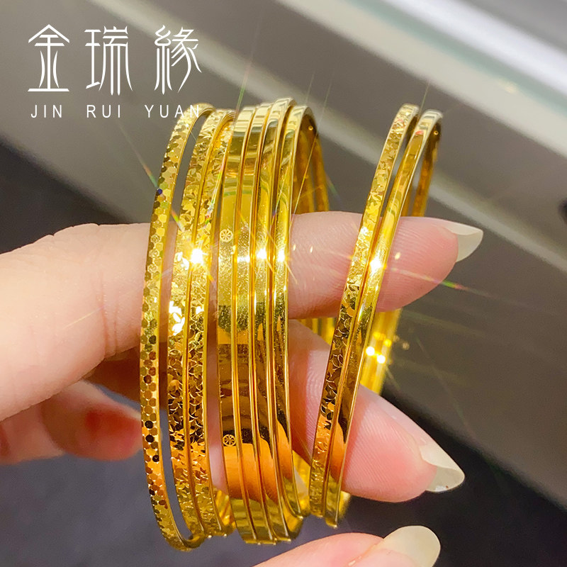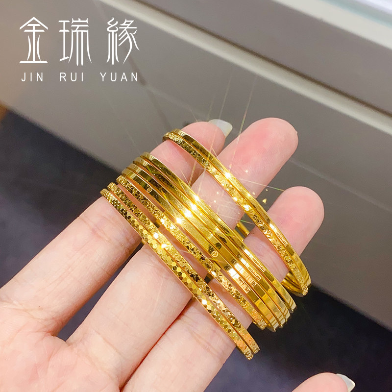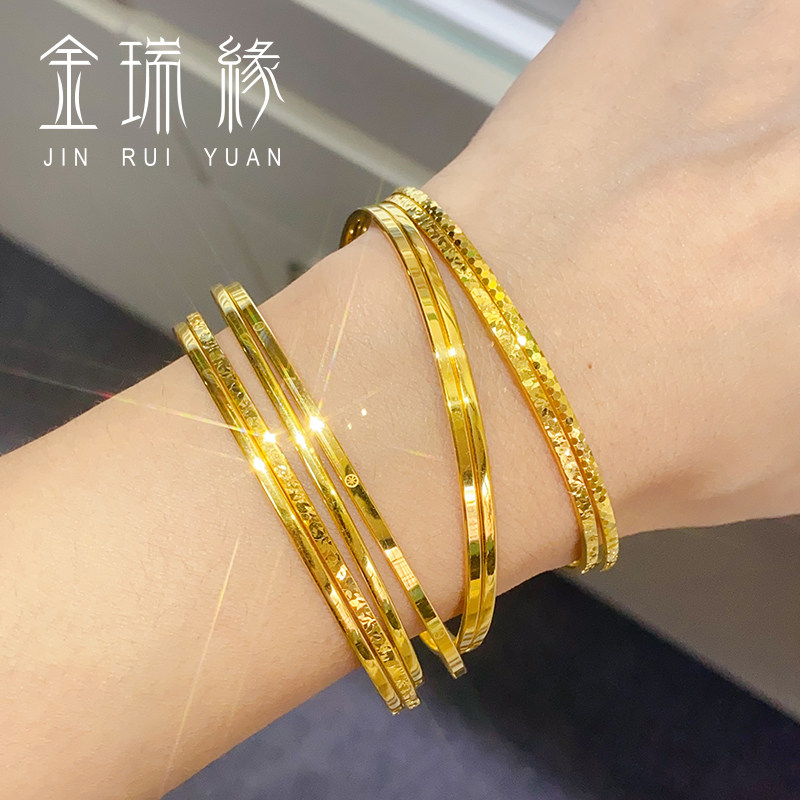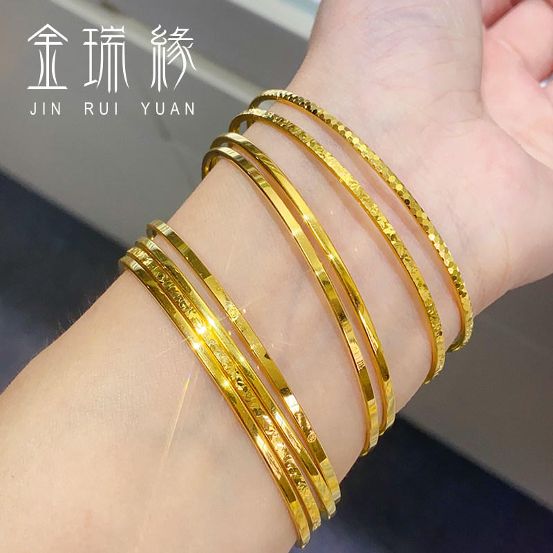 📚 黄金碎碎冰手镯女款999足金光面简约米字窄版螺纹镯子送女友礼物