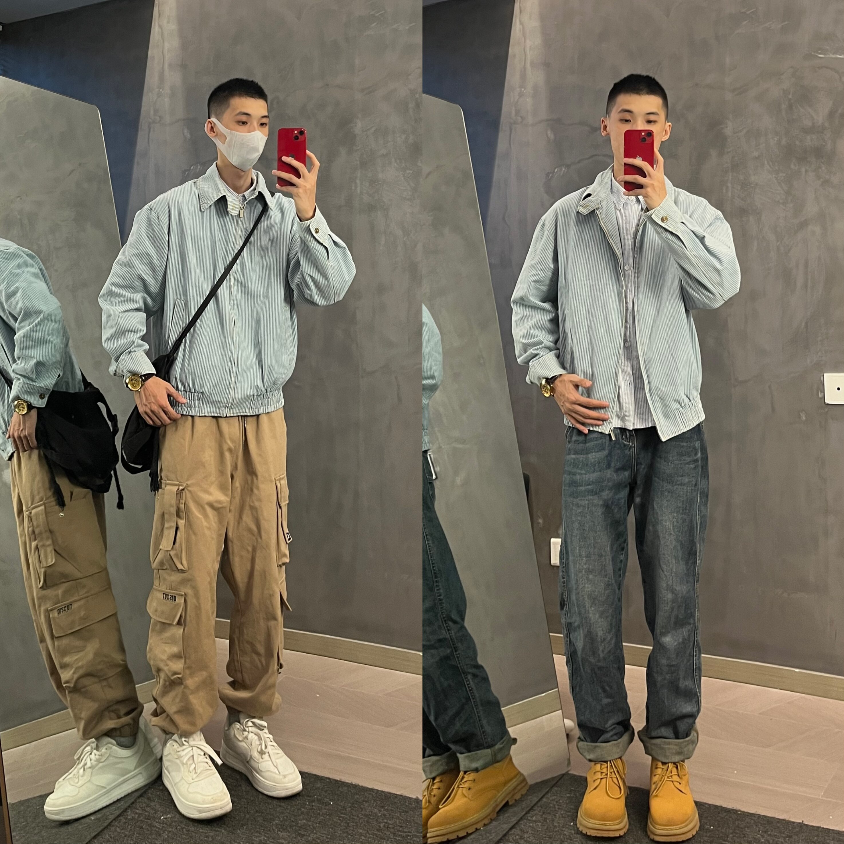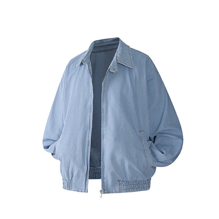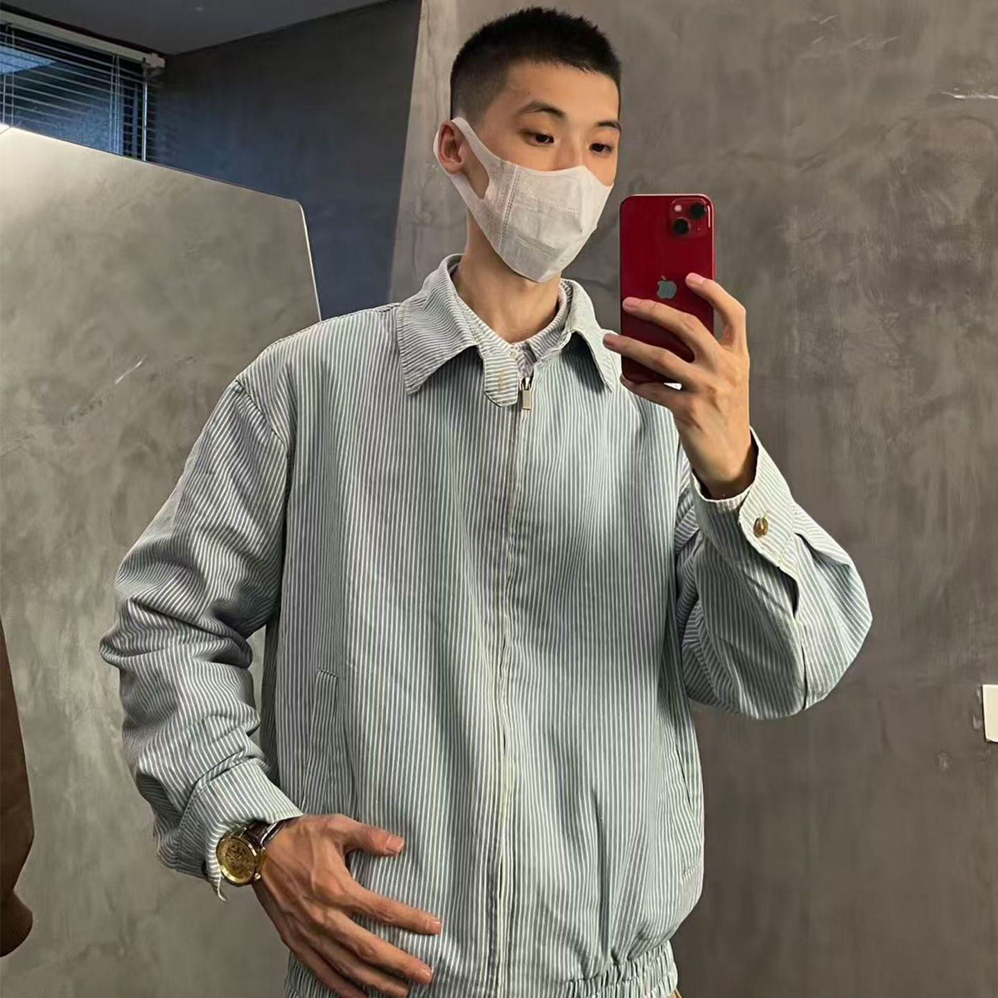 📚 重头来过蓝白条纹衬衫夹克男士潮牌秋季新款正肩时尚休闲长袖外套