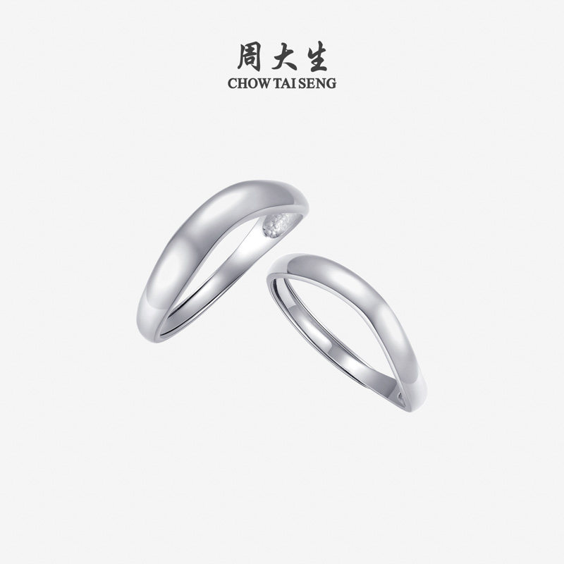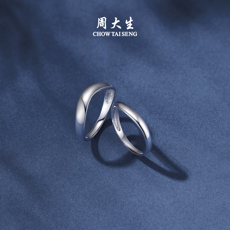 📚 周大生铂金活口戒指男女PT950白金素圈情侣对戒生日礼物送女友