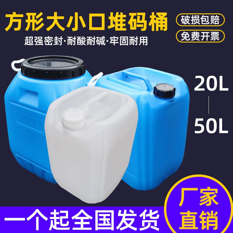 📚 吹塑桶5/20L/52L0L涂CYY料发酵塑料包装桶口小蓝色白方形化工桶
