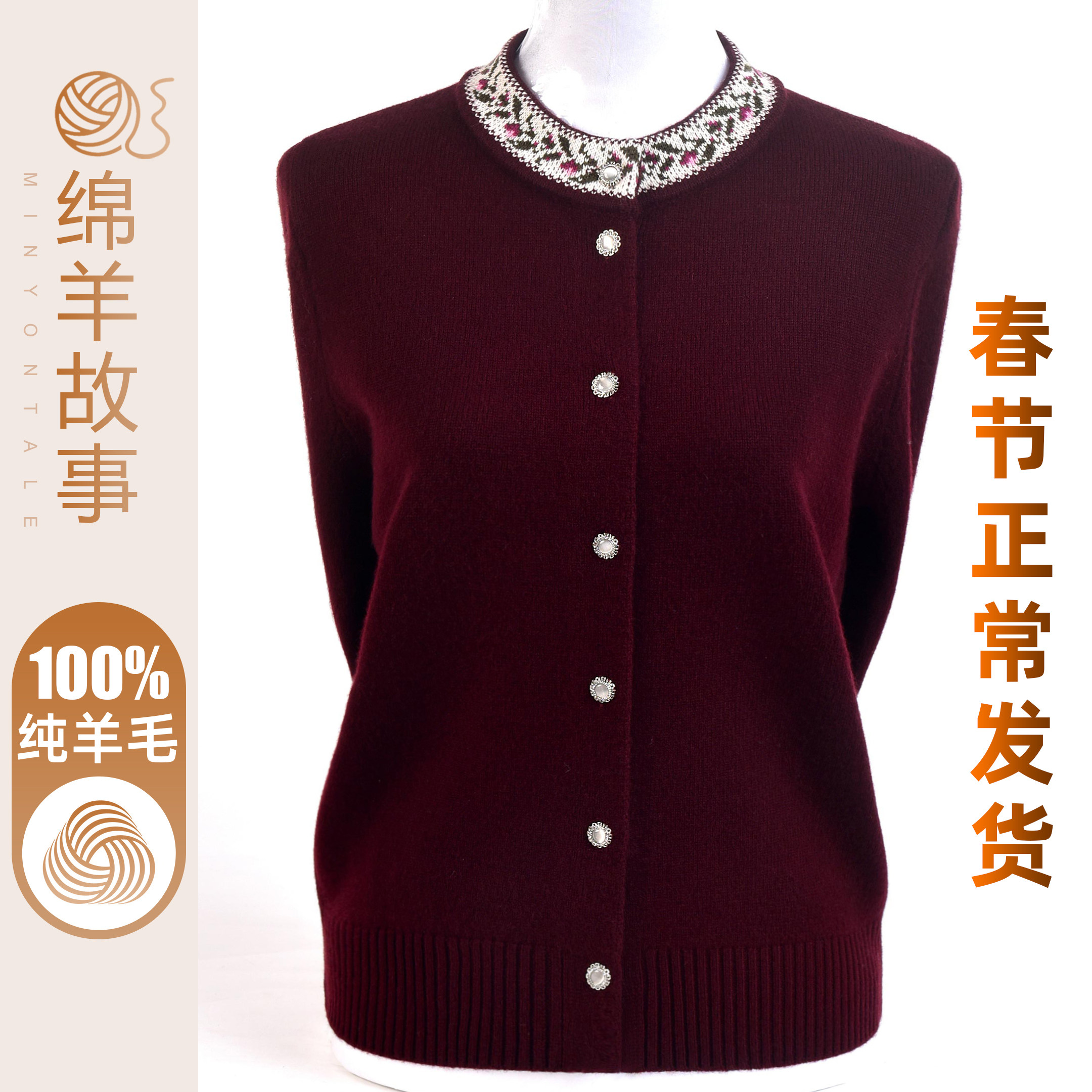 📚 秋冬100%纯羊毛开衫中老年人女装加厚毛衣外套洋气妈妈百搭针织衫