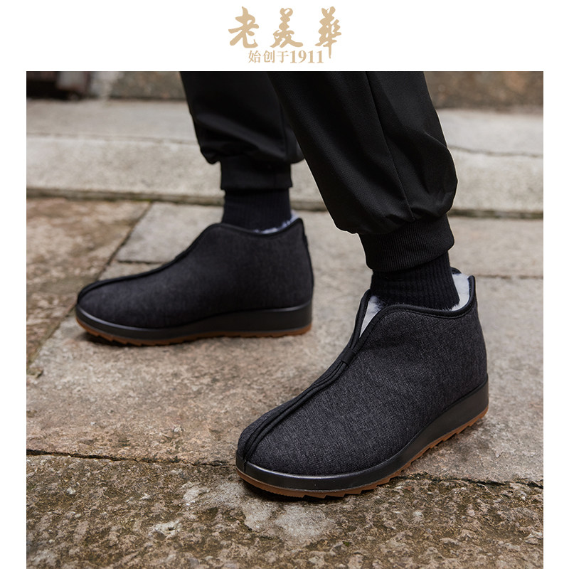 📚 老美华正品冬季男棉鞋老北京羊毛鞋保暖防滑高帮鞋男鞋男士布鞋