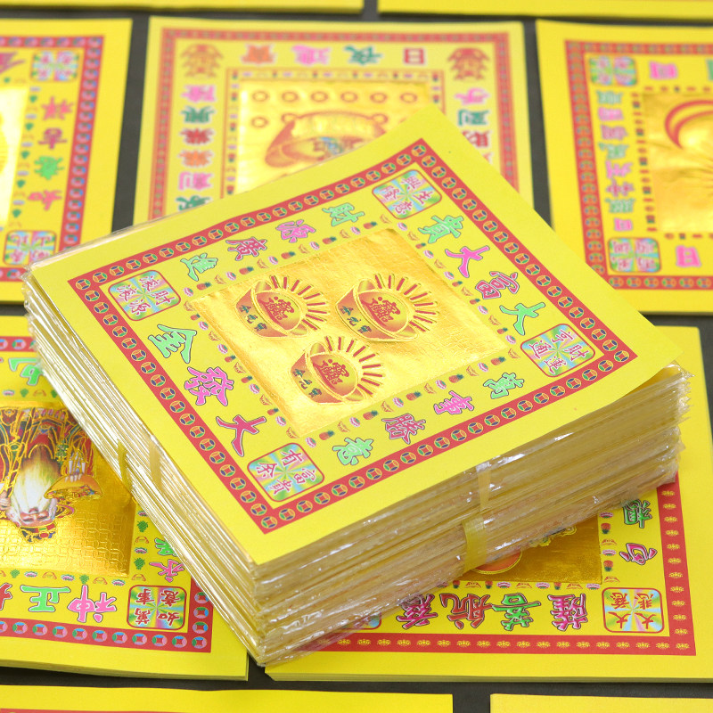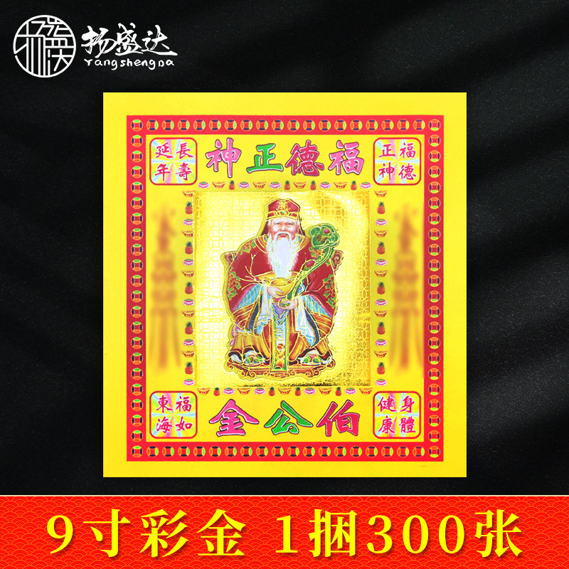 📚 伯公金9寸彩色金纸潮汕拜老爷烫金元宝上供用品神财折纸供奉寺庙