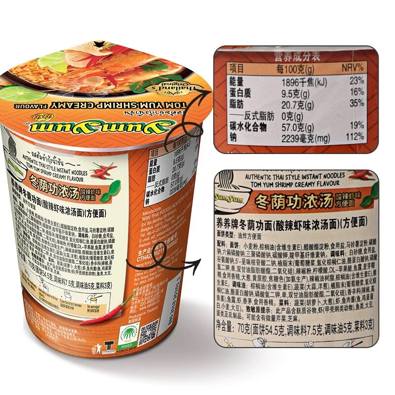 📚 露思同款泰国yumyum养养牌方便面冬阴功酸辣虾泡面拉面杯面咖喱面