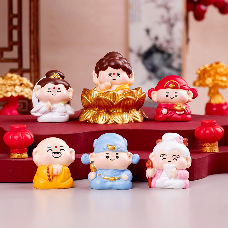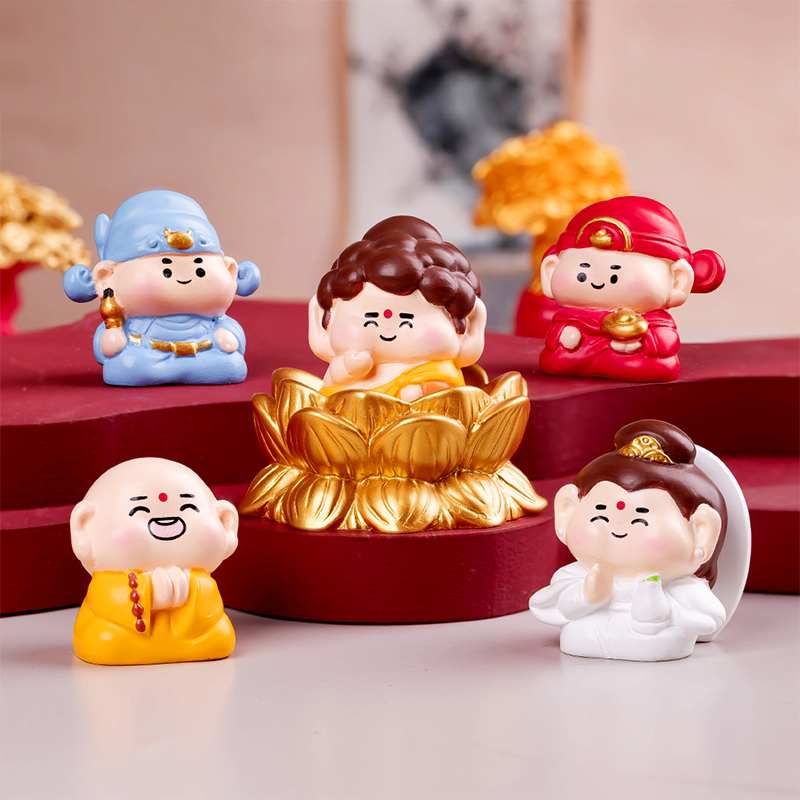 📚 招财保平安观音佛祖文曲星财神仙小摆件 工位桌面电脑电视装饰品