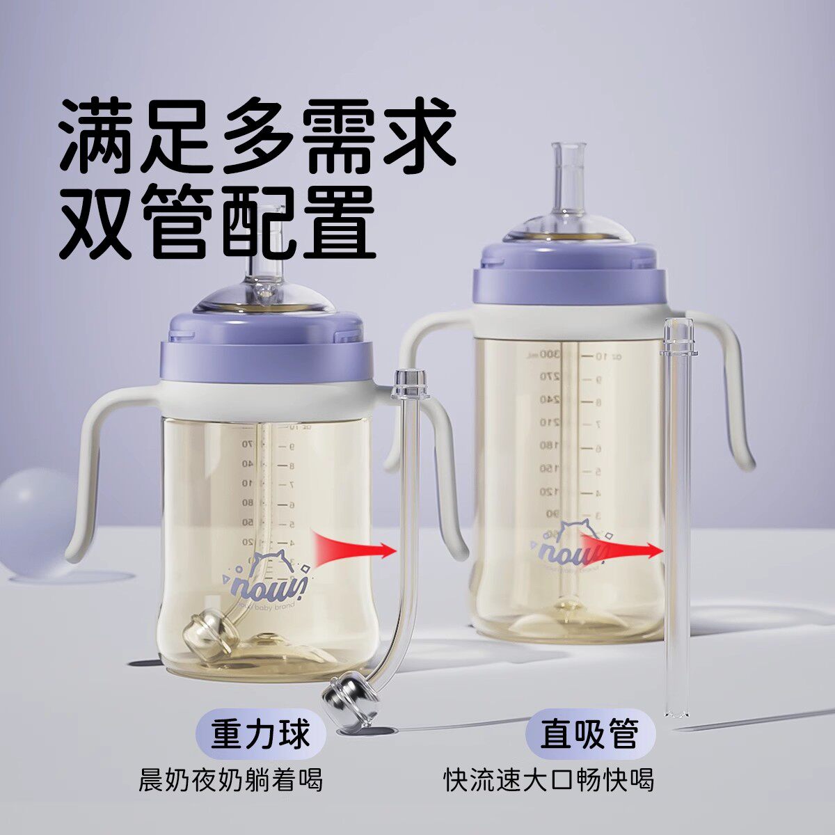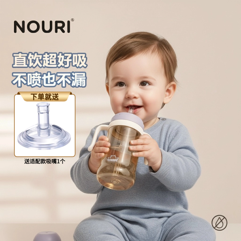 📚 【送吸嘴】NOURI诺利PPSU吸管奶瓶大宝宝学饮杯儿童喝奶直饮杯
