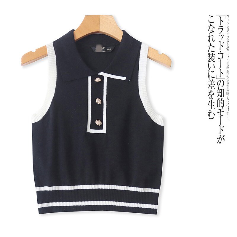 📚 B9426外贸欧美单女士针织马甲春季新款翻领套头无袖拼色短款马夹