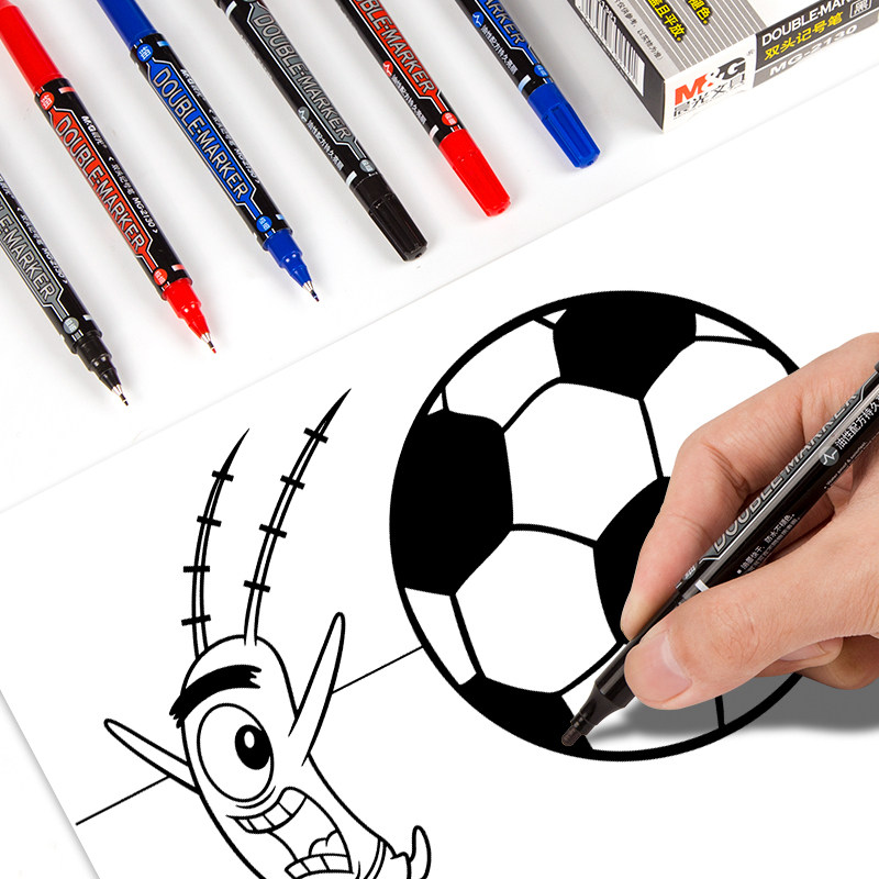 📚 晨光小双头油性记号笔小头细头马克笔勾线笔儿童绘画黑色描边美术勾边笔批发划线笔速干防水笔多功能油性笔
