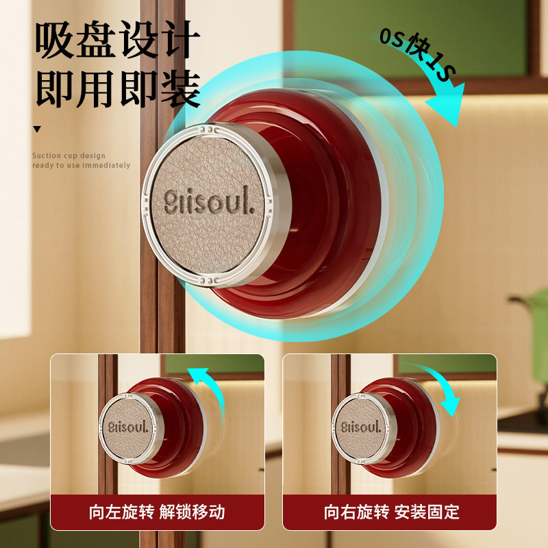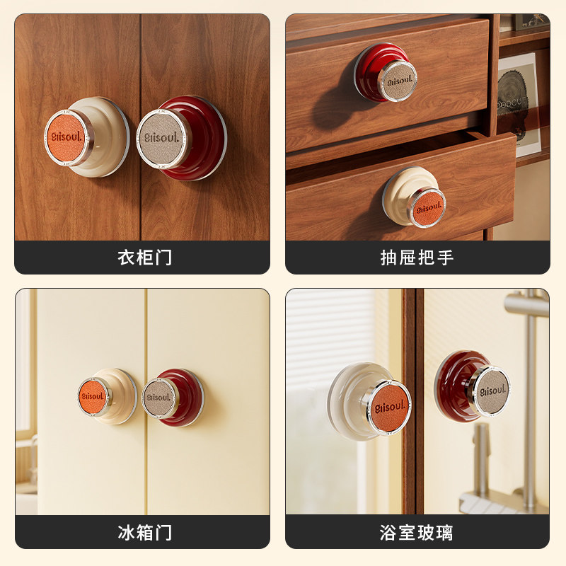 📚 玻璃门吸盘把手免打孔中古风移门强力把手厨房冰箱橱柜门皮革拉手