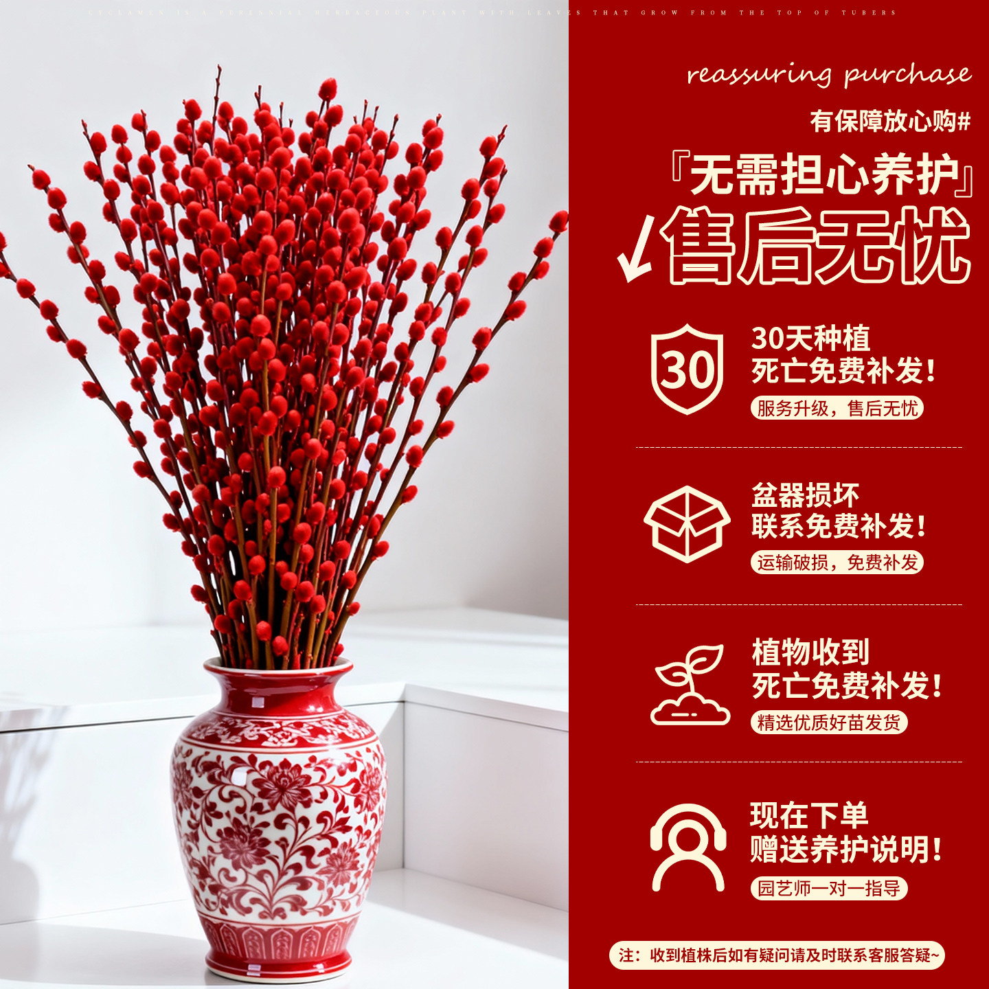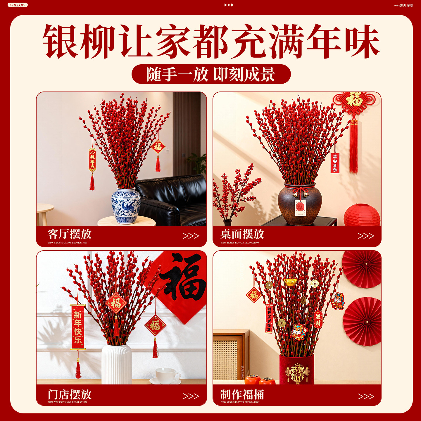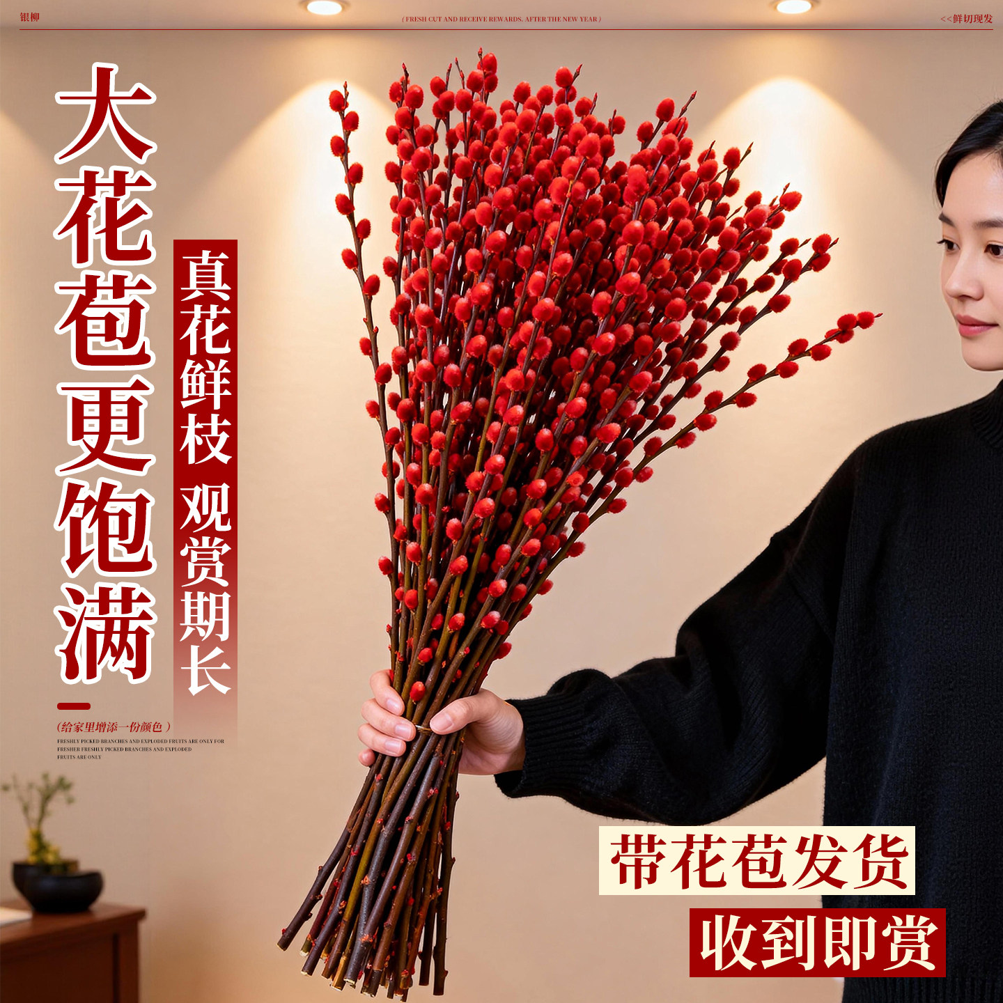📚 银柳真花鲜枝客厅摆件冬季耐寒干花新年红色福桶年宵花卉招财花束