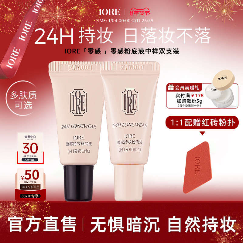📚 【两支装】IORE粉底液控油水润轻透服帖裸妆感持妆细腻官方旗舰店