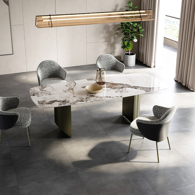 📚 蒂诺莎轻奢岩板餐桌长方形潘多拉家用现代简约亮光岩板餐桌椅组合