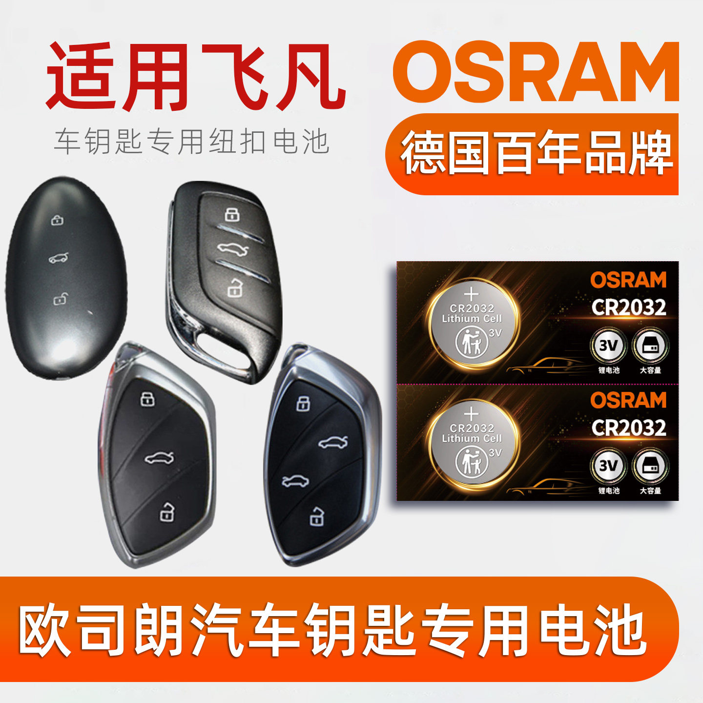 📚 欧司朗汽车钥匙电池适用飞凡F7/R7/飞凡MARVEL R/ER6遥控钥匙CR2032纽扣电池