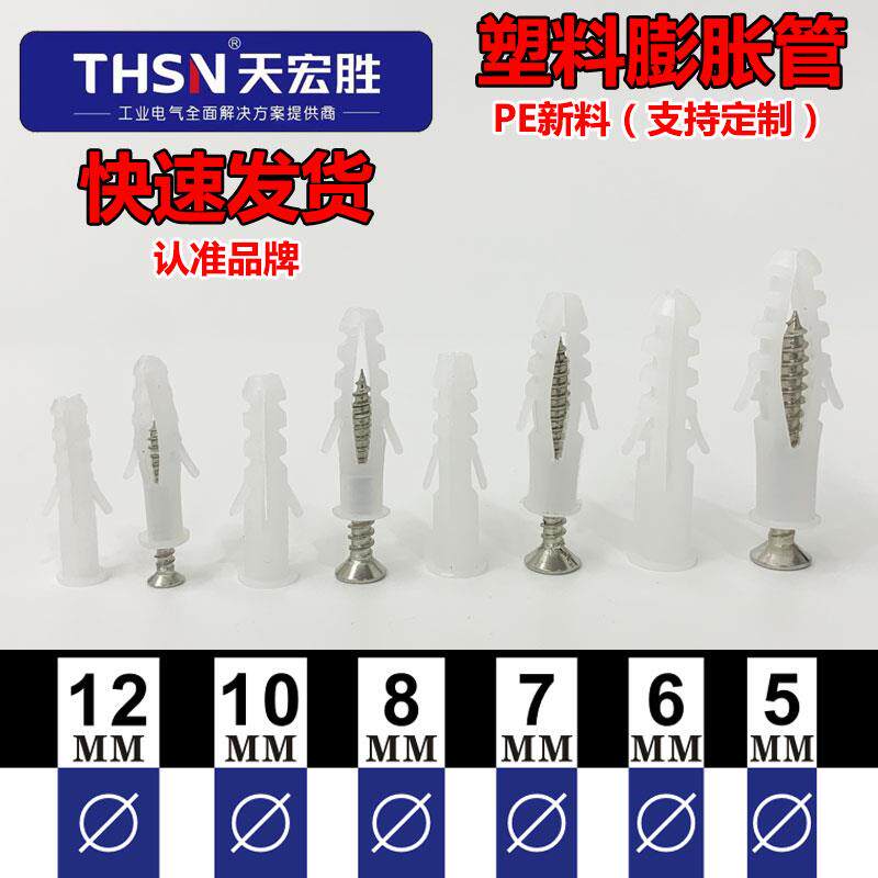 📚 塑料膨胀管5mm6mm7mm8mm10mm12mm配不锈钢螺丝钉胶塞螺栓膨胀螺丝