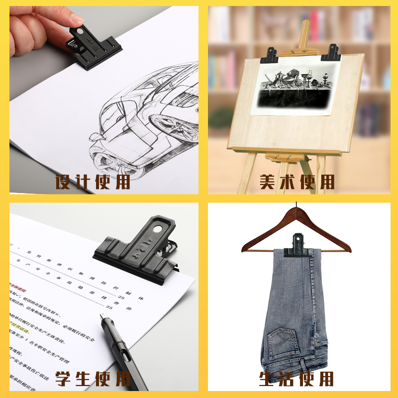 📚 黑色铁夹固定小夹子文具夹子复古大夹子强力特大号多功能票夹不锈钢文件夹书夹长尾夹燕尾夹财务票夹子票据