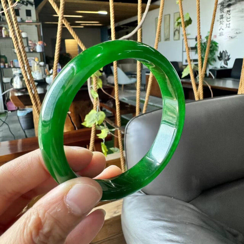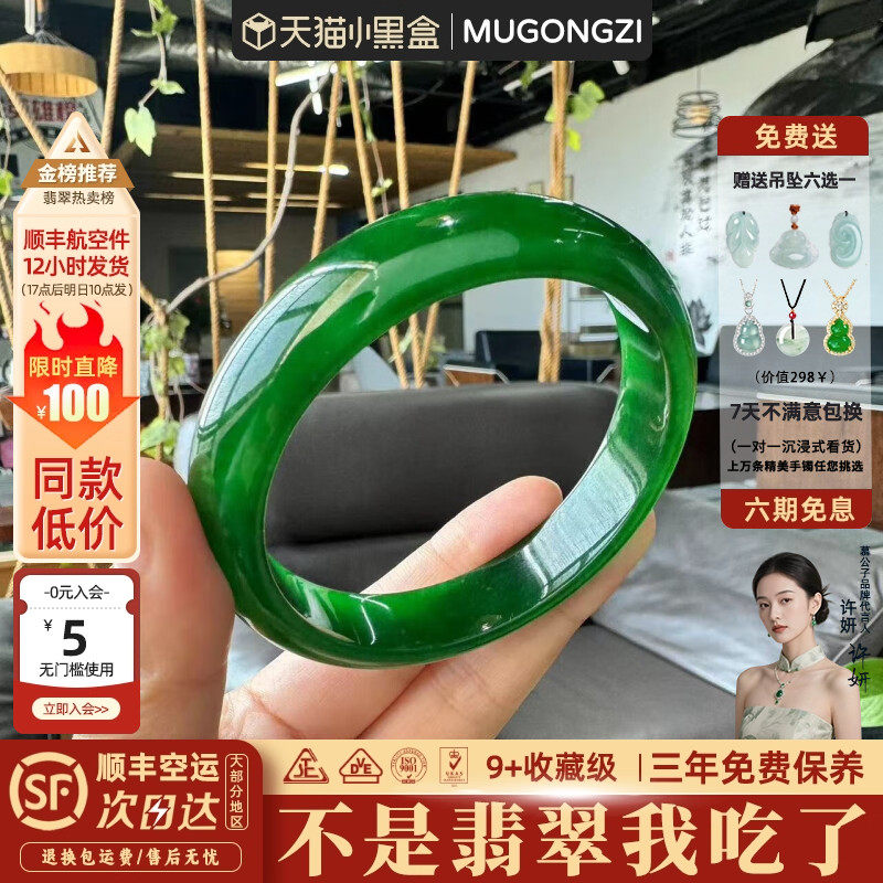📚 慕公子"格曼清风"高端缅甸翡翠帝王满绿玉手镯子正品女款玉石处理