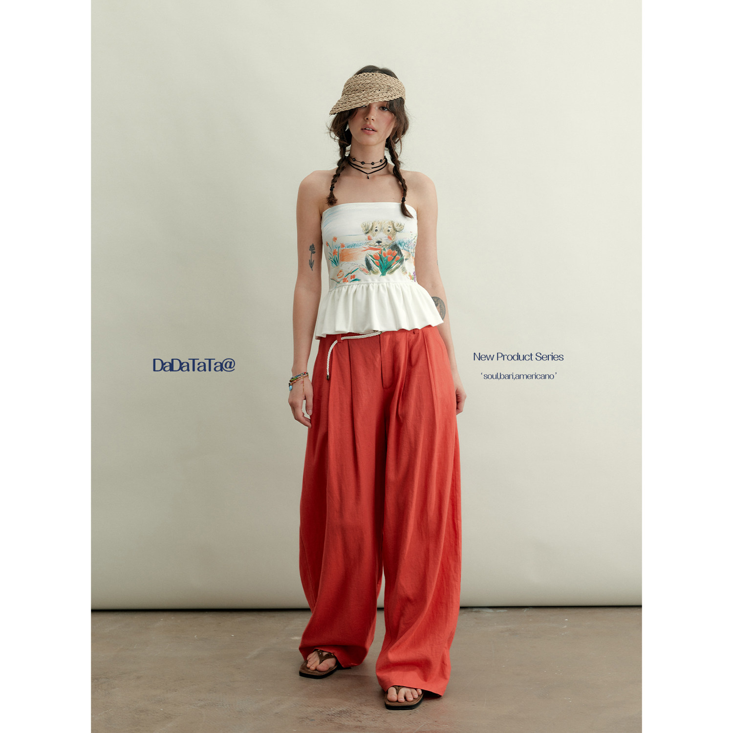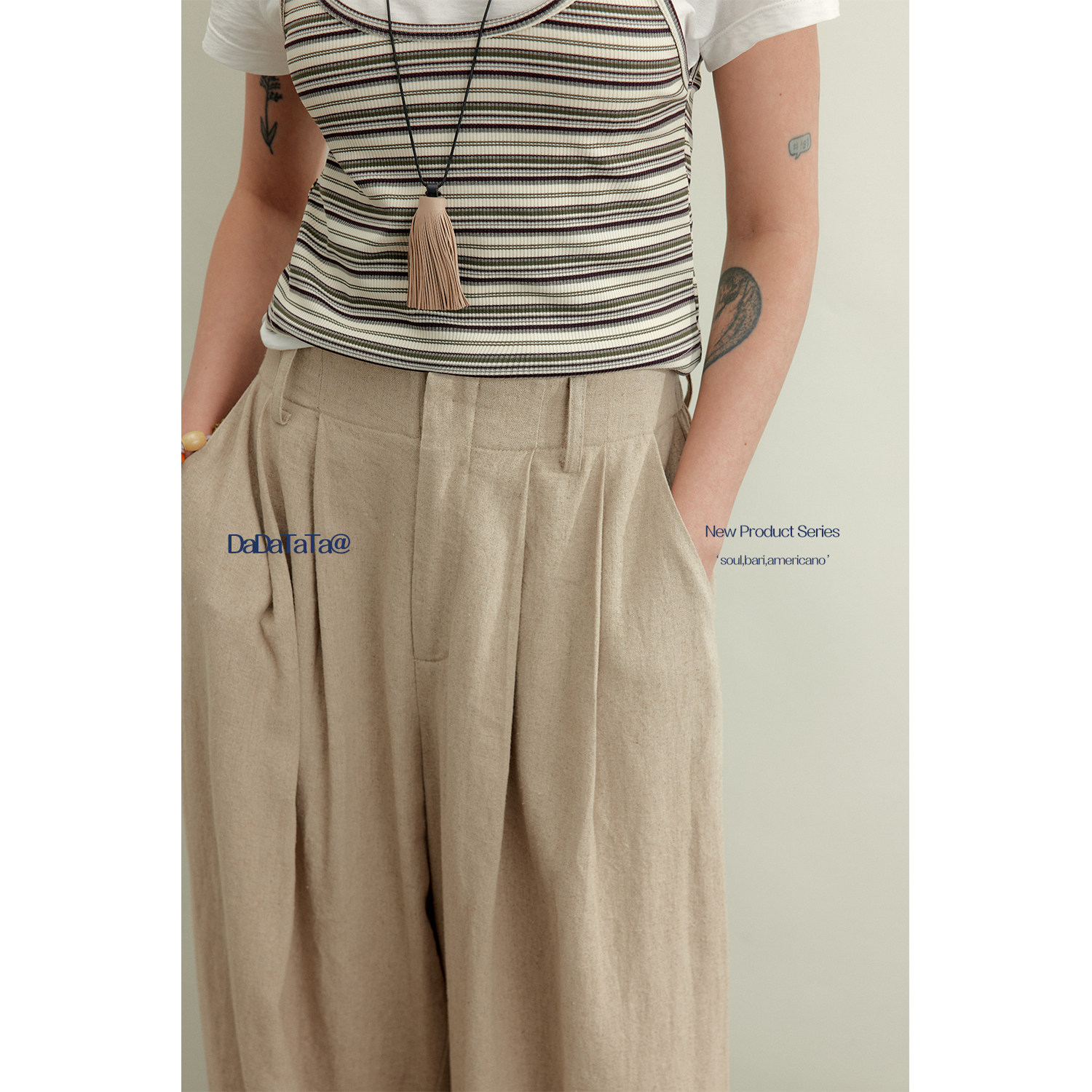 📚 晶咕白标DADATATA【梅丁假日】2026夏季松紧腰大码女装亚麻休闲裤