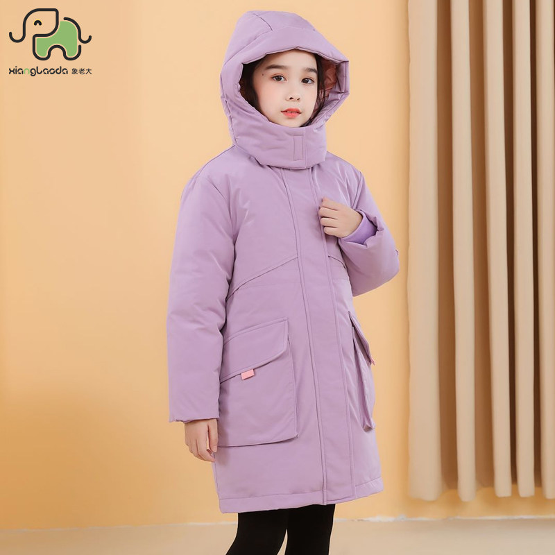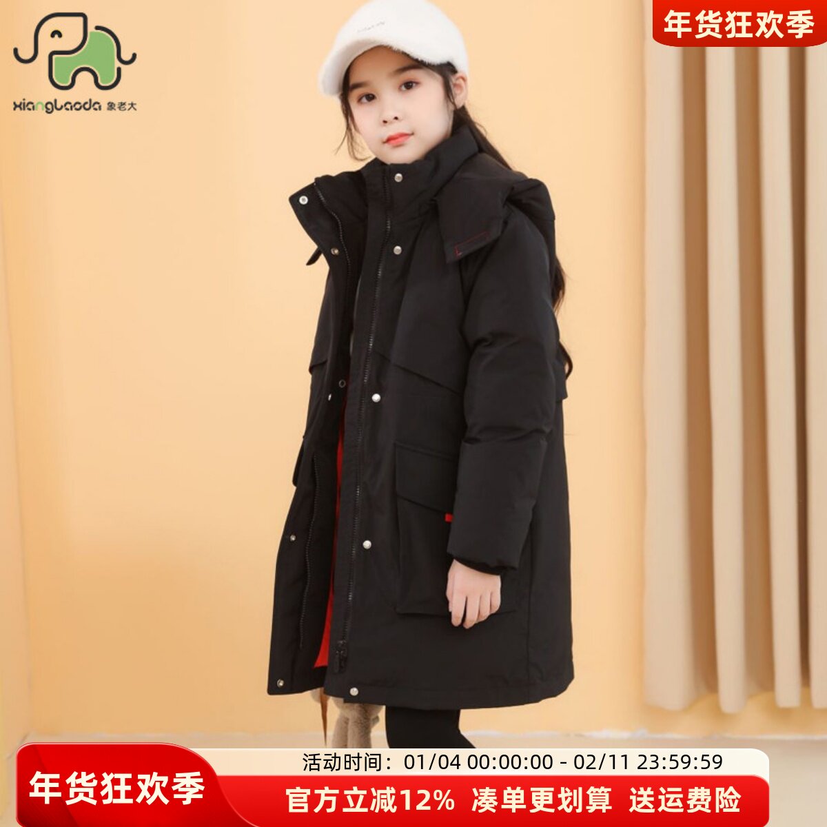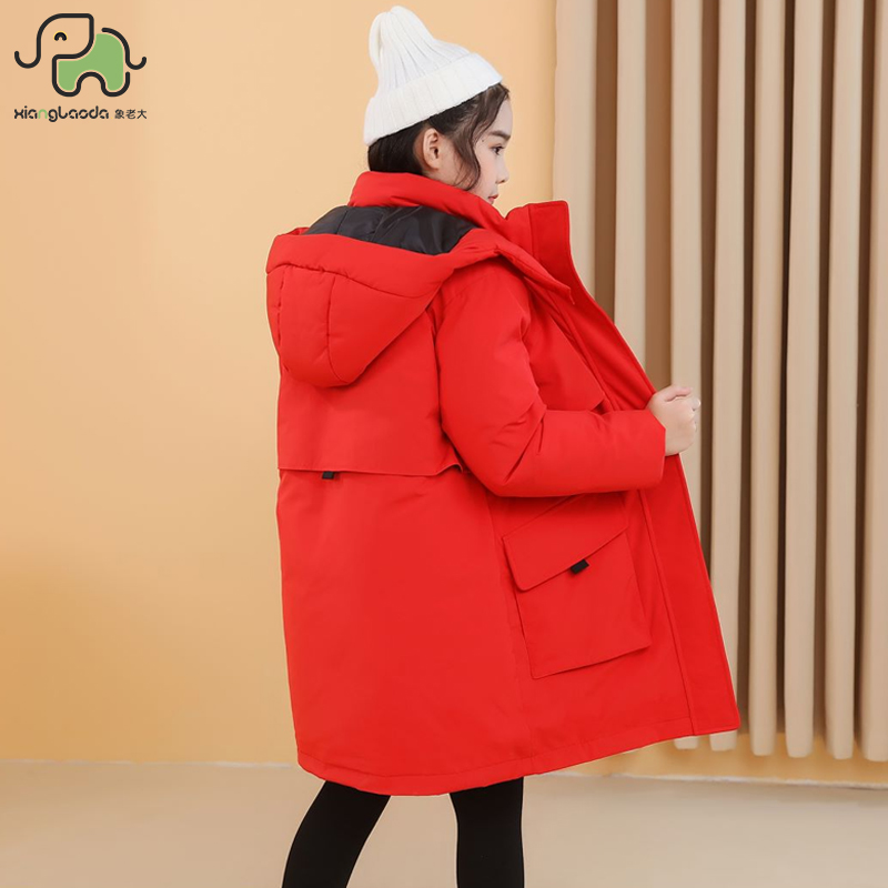 📚 象老大女童羽绒服中长款加厚红色中大童儿童活里活面洋气冬季外套