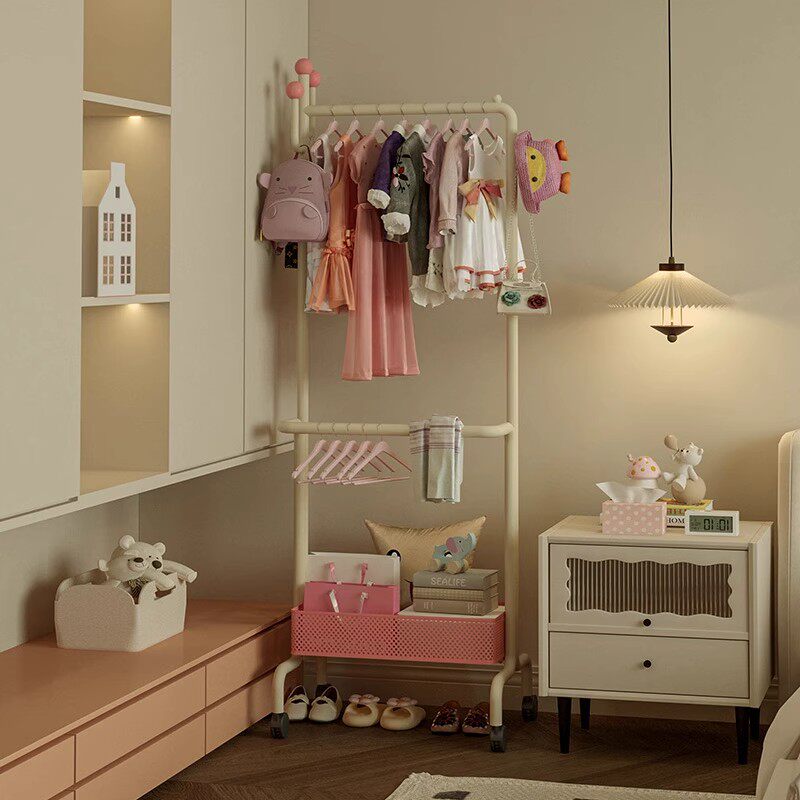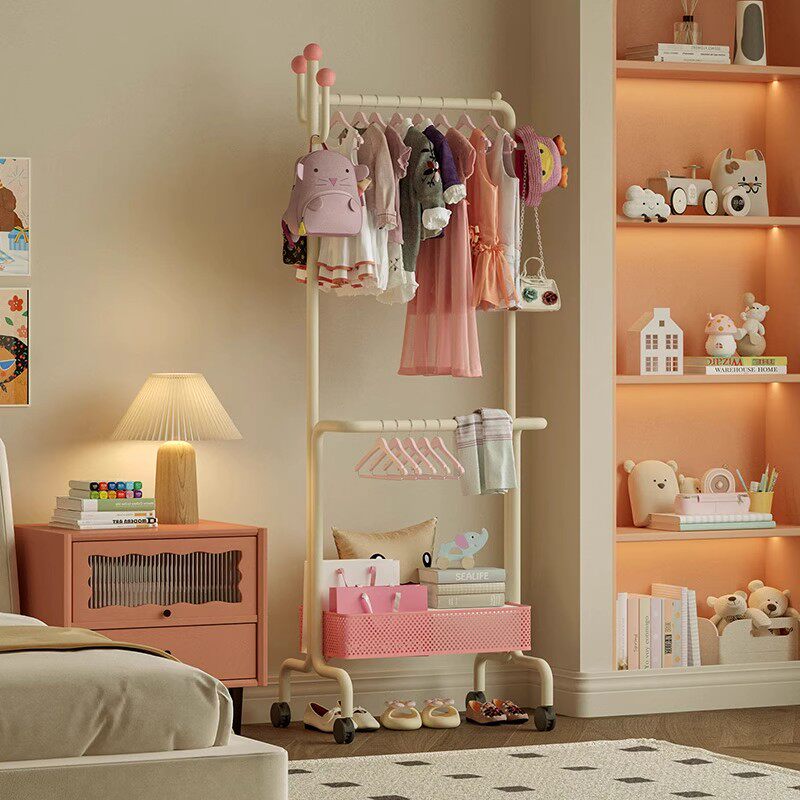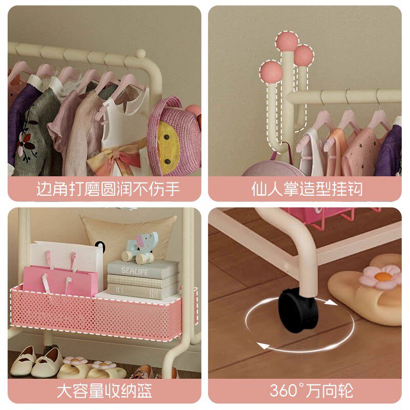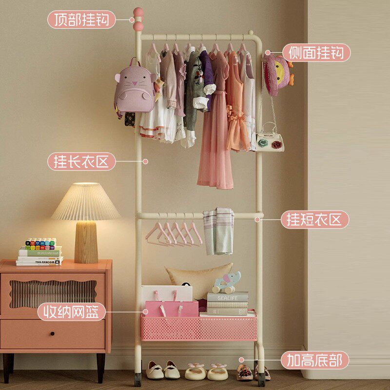 📚 儿童落地式衣帽架可移动卧室房间多巴胺挂衣服架子收纳置物挂衣架