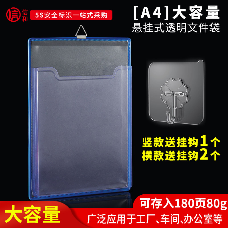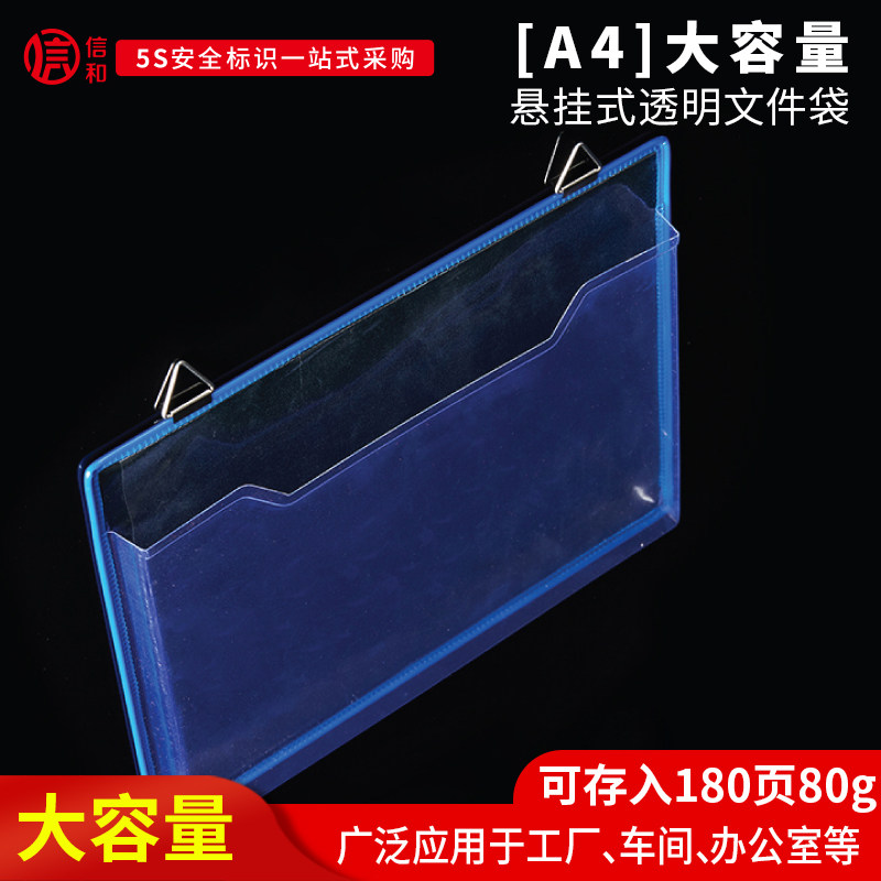 📚 大容量A4挂式透明文件袋盒式收纳袋文件盒空白记录夹加厚文件夹单层磁性文件架机床设备悬挂作业指导书展示架