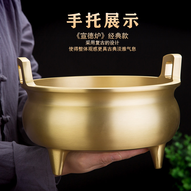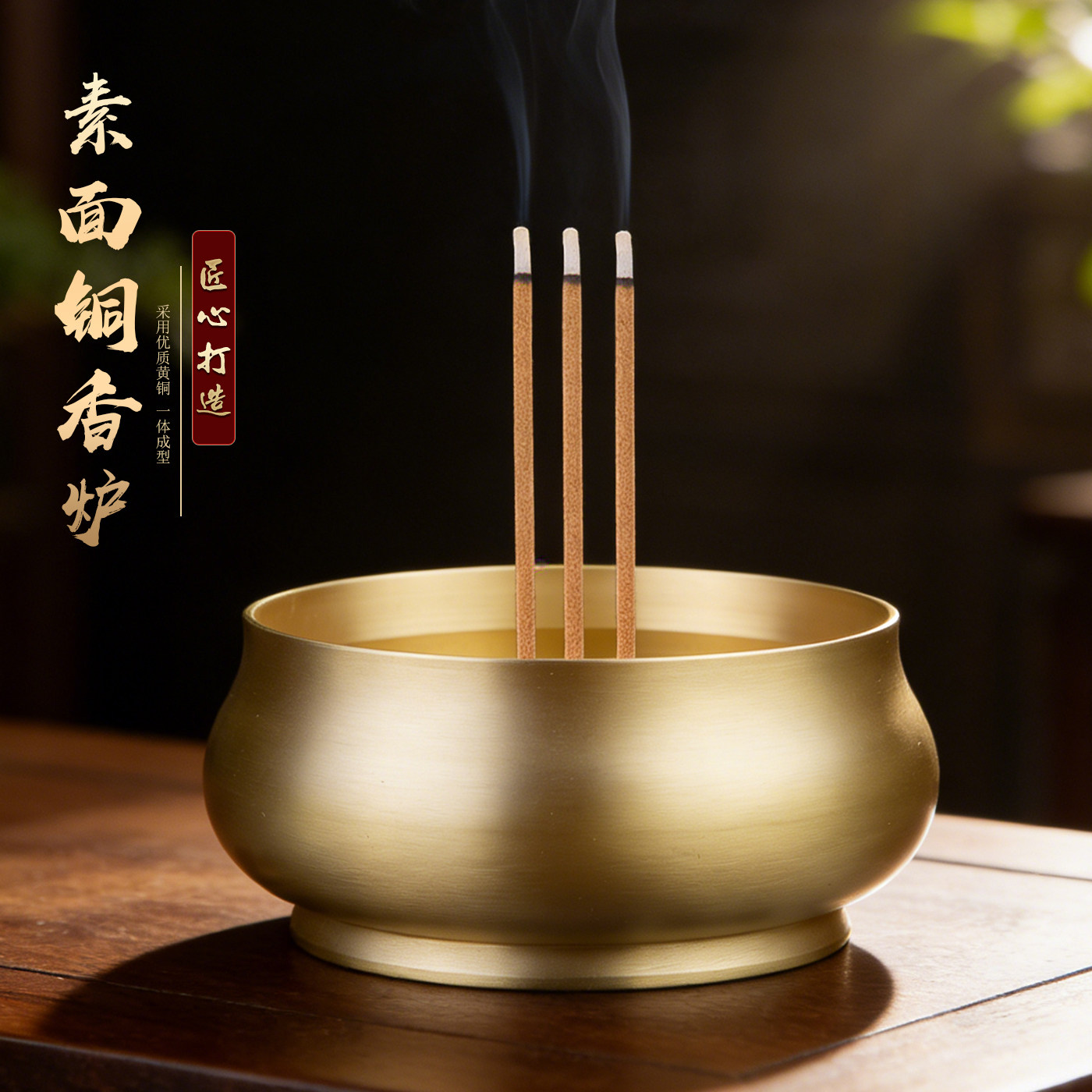 📚 纯铜香炉宣德炉家用供奉线香炉香插复古茶道香薰炉室内香炉碗供佛
