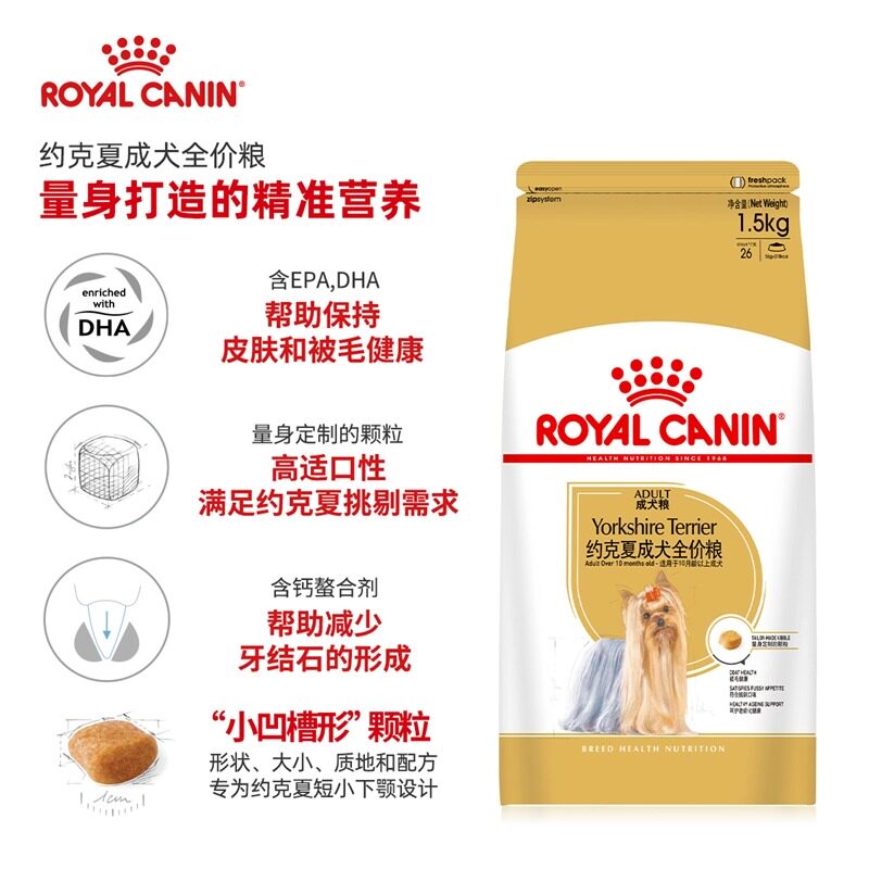 📚 皇家狗粮约克夏专用成犬主粮PRY28/1.5kg小型成犬专用营养犬干粮