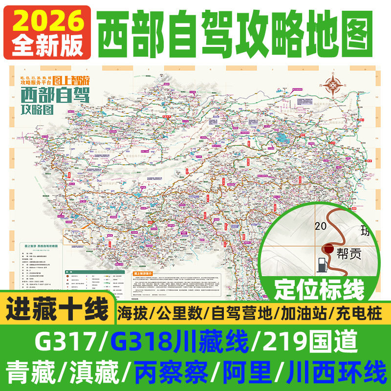 📚 2026西部攻略地图川藏线318国道西藏新疆阿里青甘川西部自驾旅游路线攻略地图自驾露营十大进藏线路219国道全线加油站公里数海拔