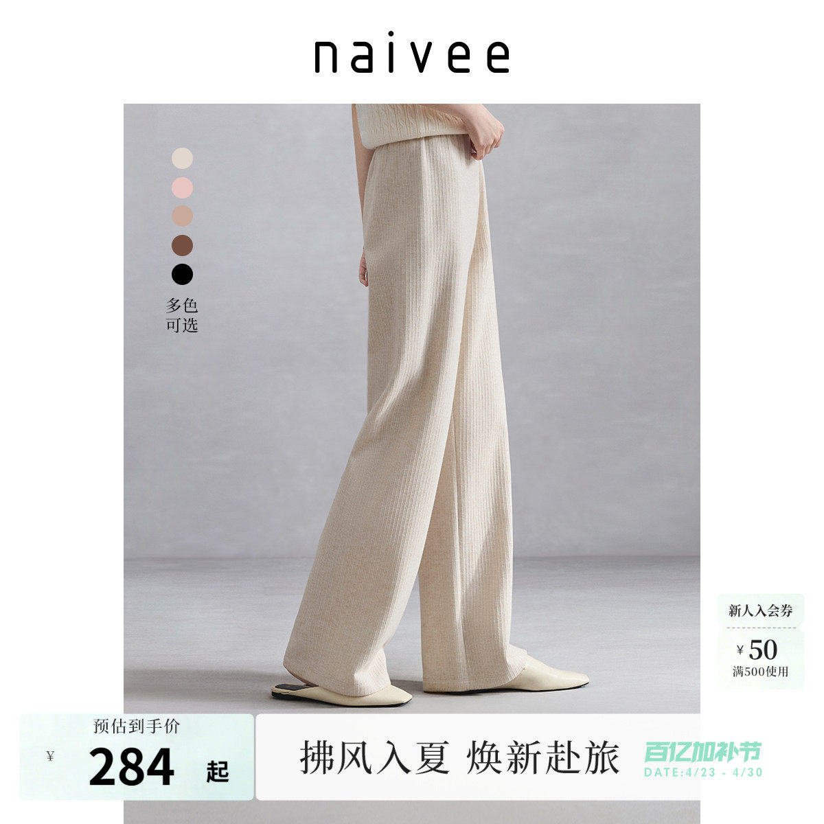 📚 naivee纳薇悦己裤直筒阔腿糯米裤及地长裤垂感粉红休闲裤女春新款