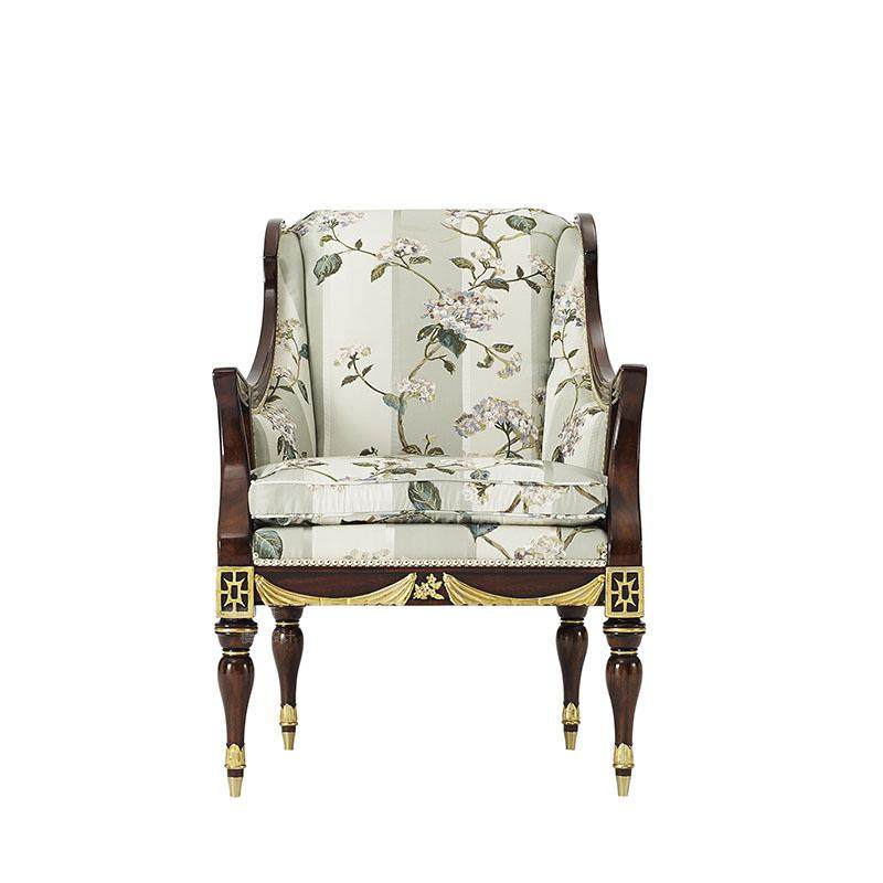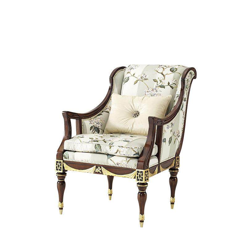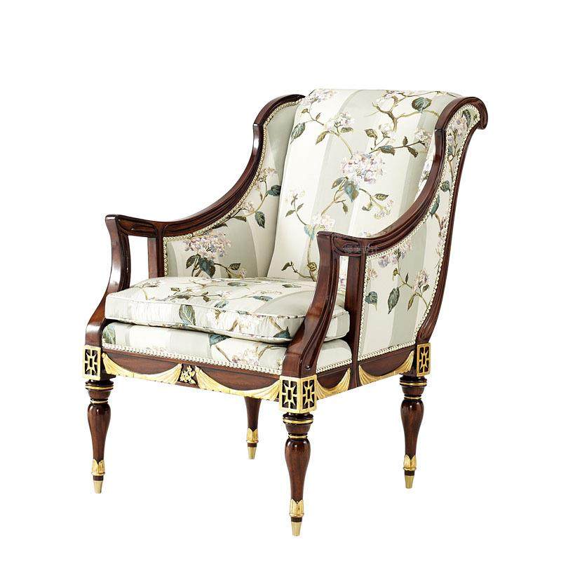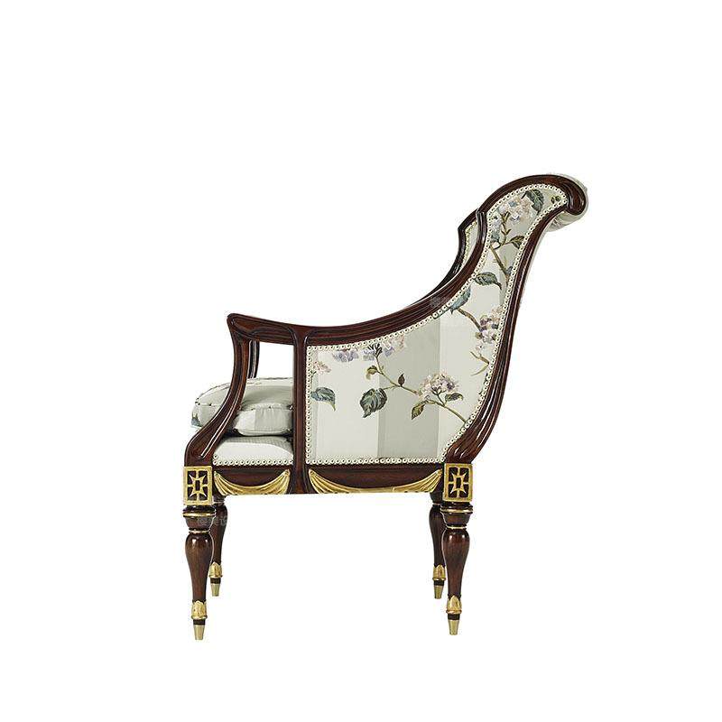 📚 实木雕花描金休闲椅英式布艺沙发椅拉卡萨古典别墅古堡样板房家具