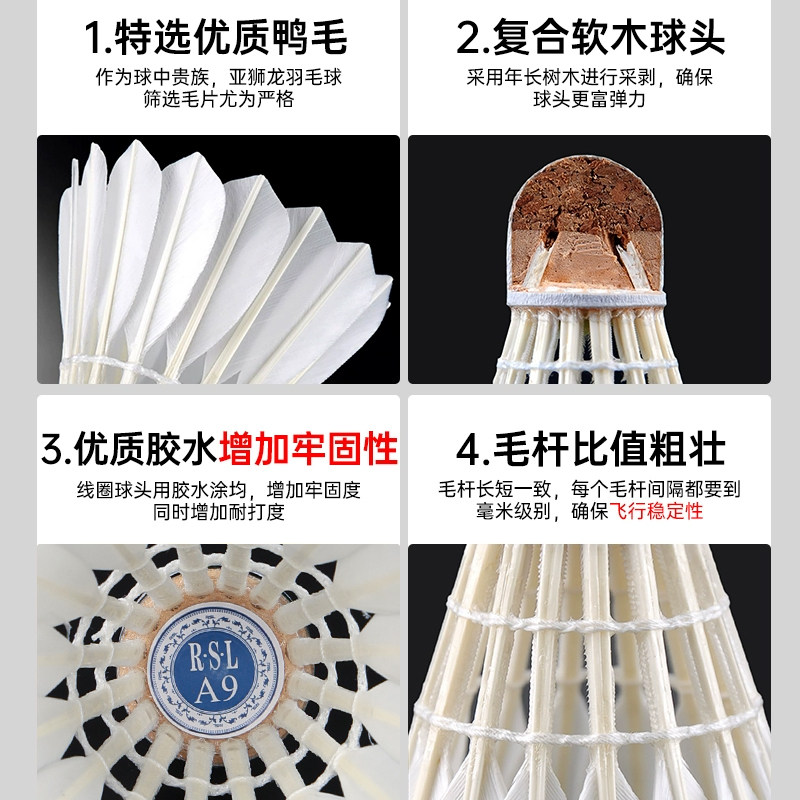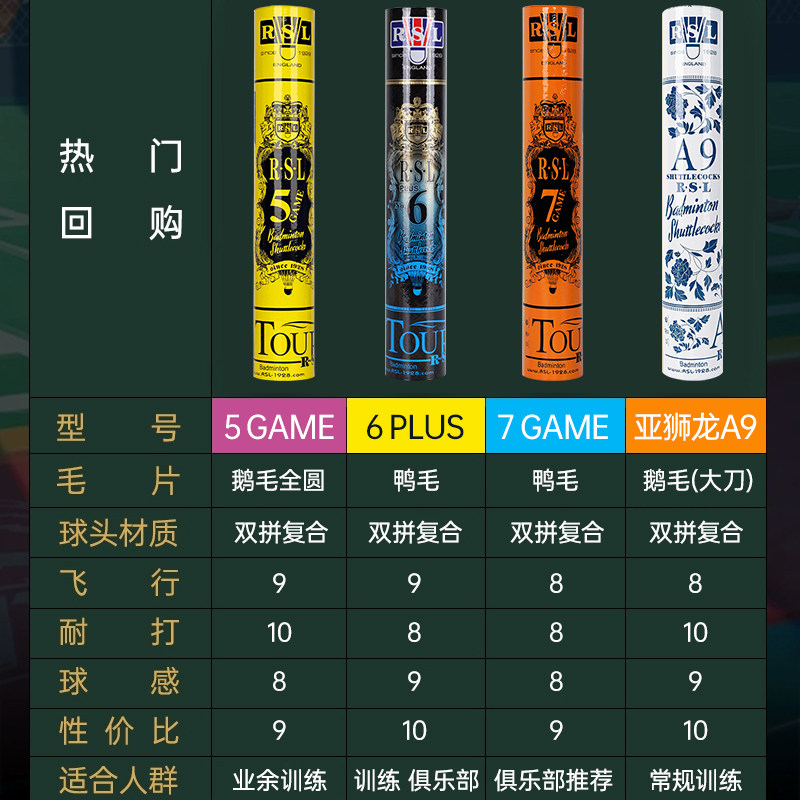 📚 RSL亚狮龙羽毛球正品6PLUS专业训练耐打Supreme室内比赛用球5GAME