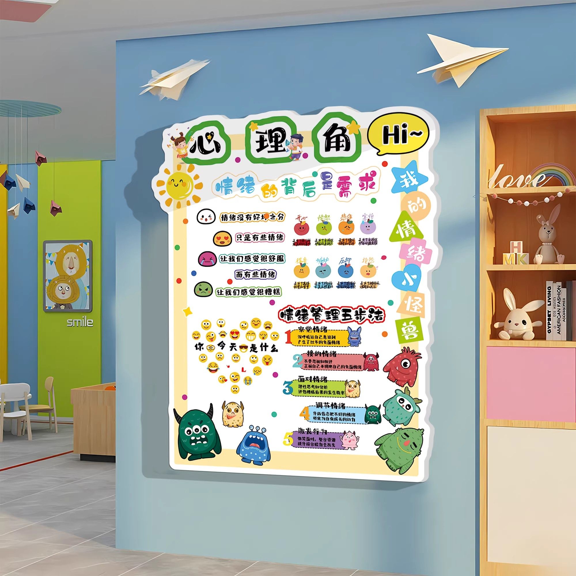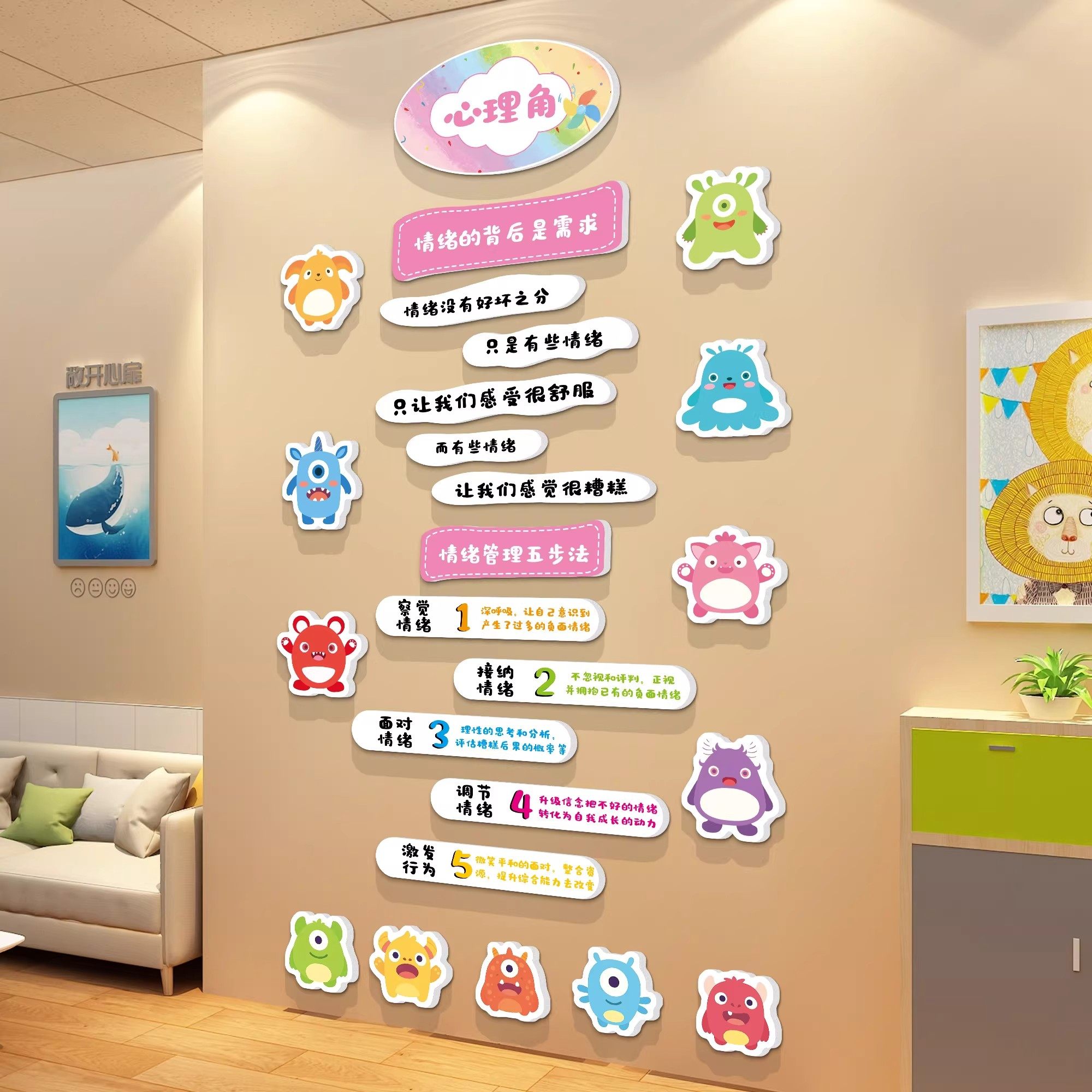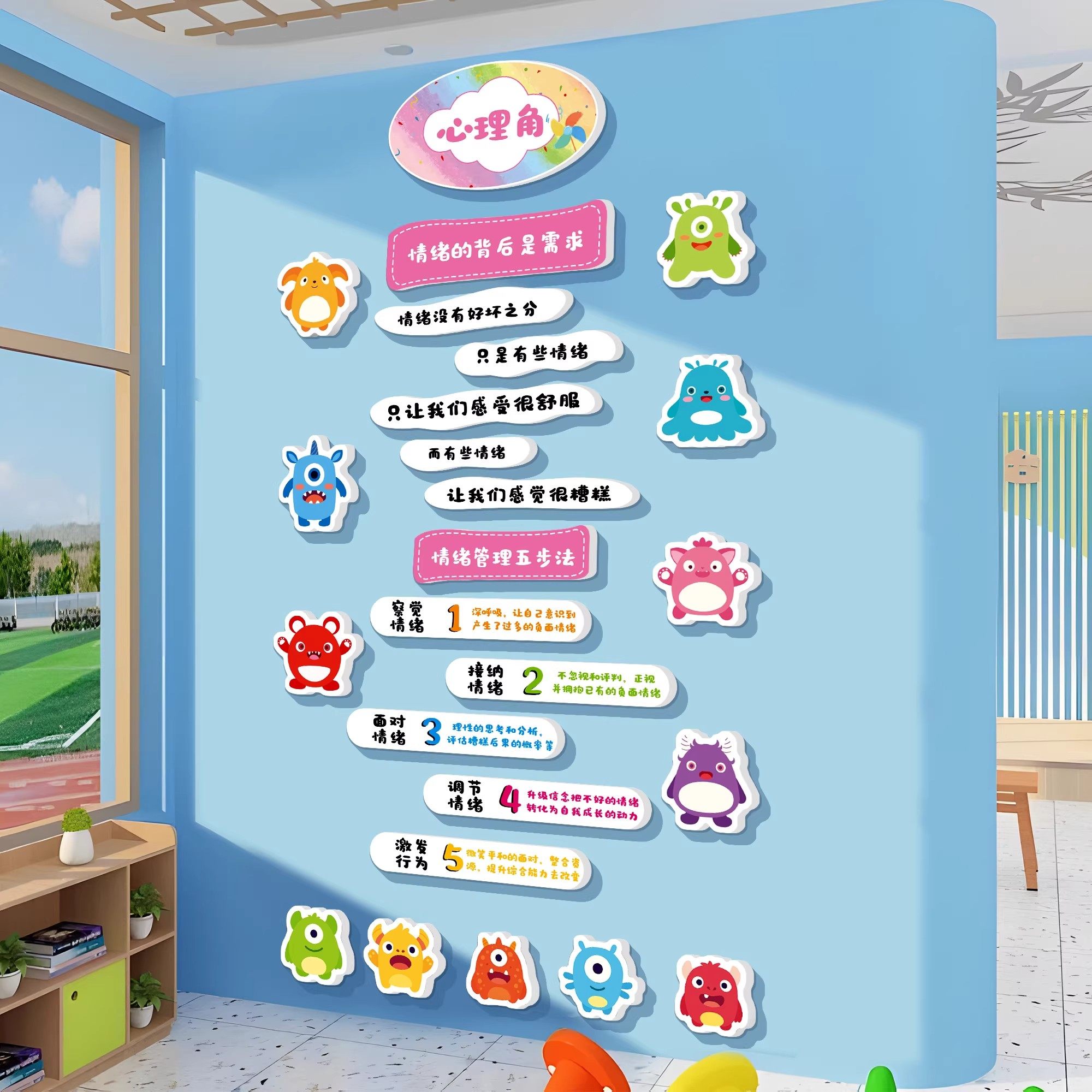 📚 班级心理角文化墙心理咨询室布置教室装饰情绪管理小怪兽背景墙贴