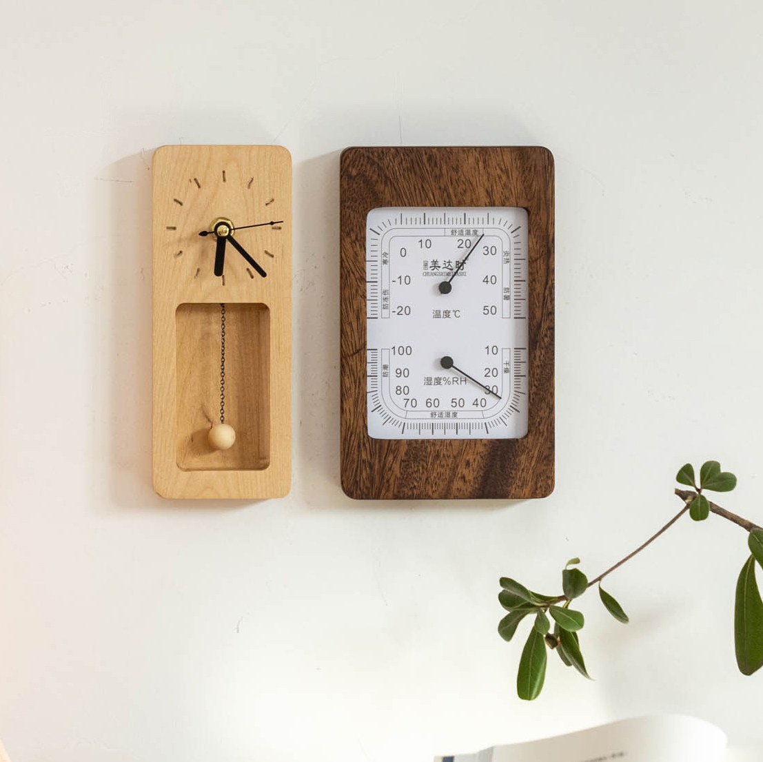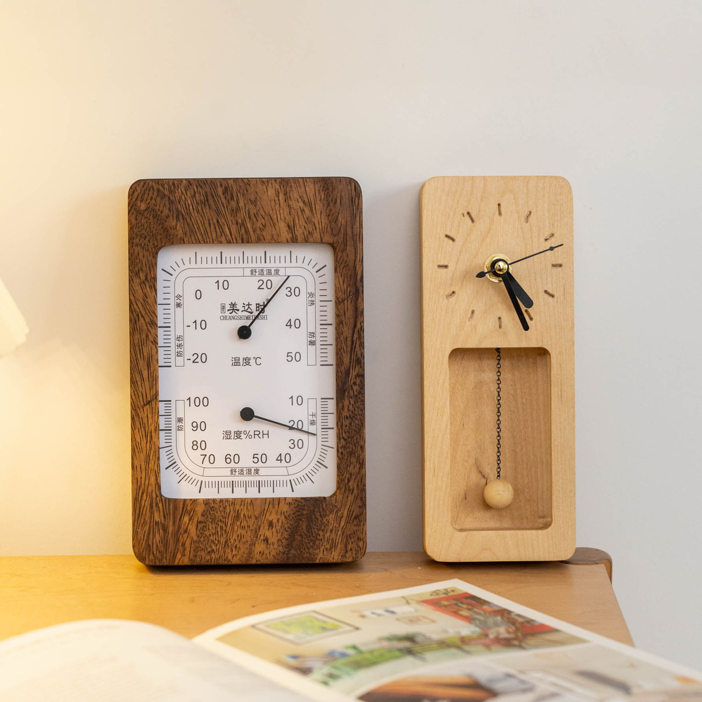 📚 简约实木钟表温湿计摆放式客厅挂钟轻奢高级感家用复古静音时钟