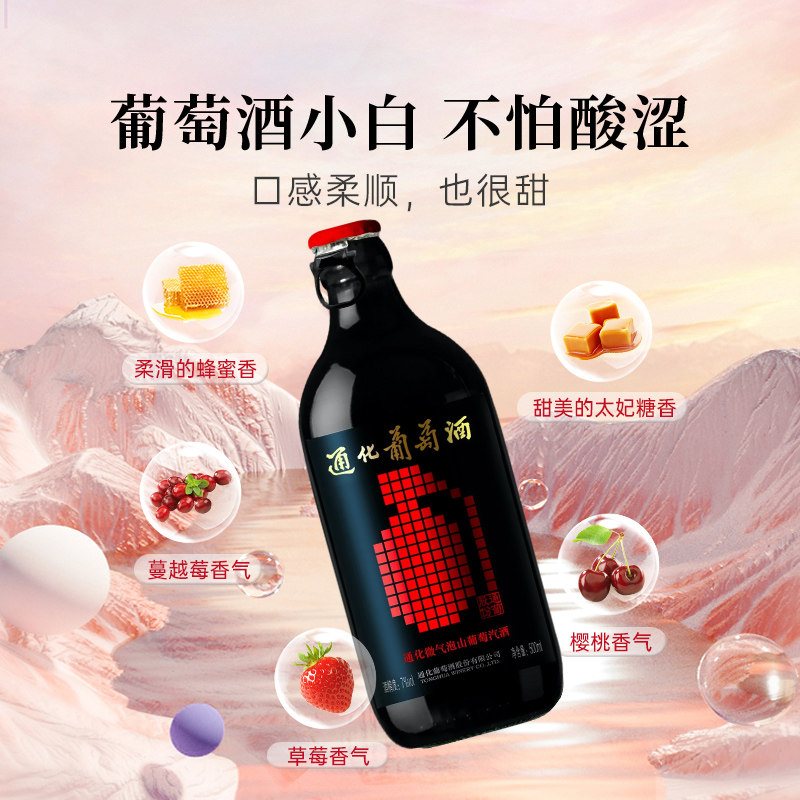 📚 通化旗舰店 微气泡山葡萄汽酒7度500ML/瓶甜型葡萄酒东北特产红酒