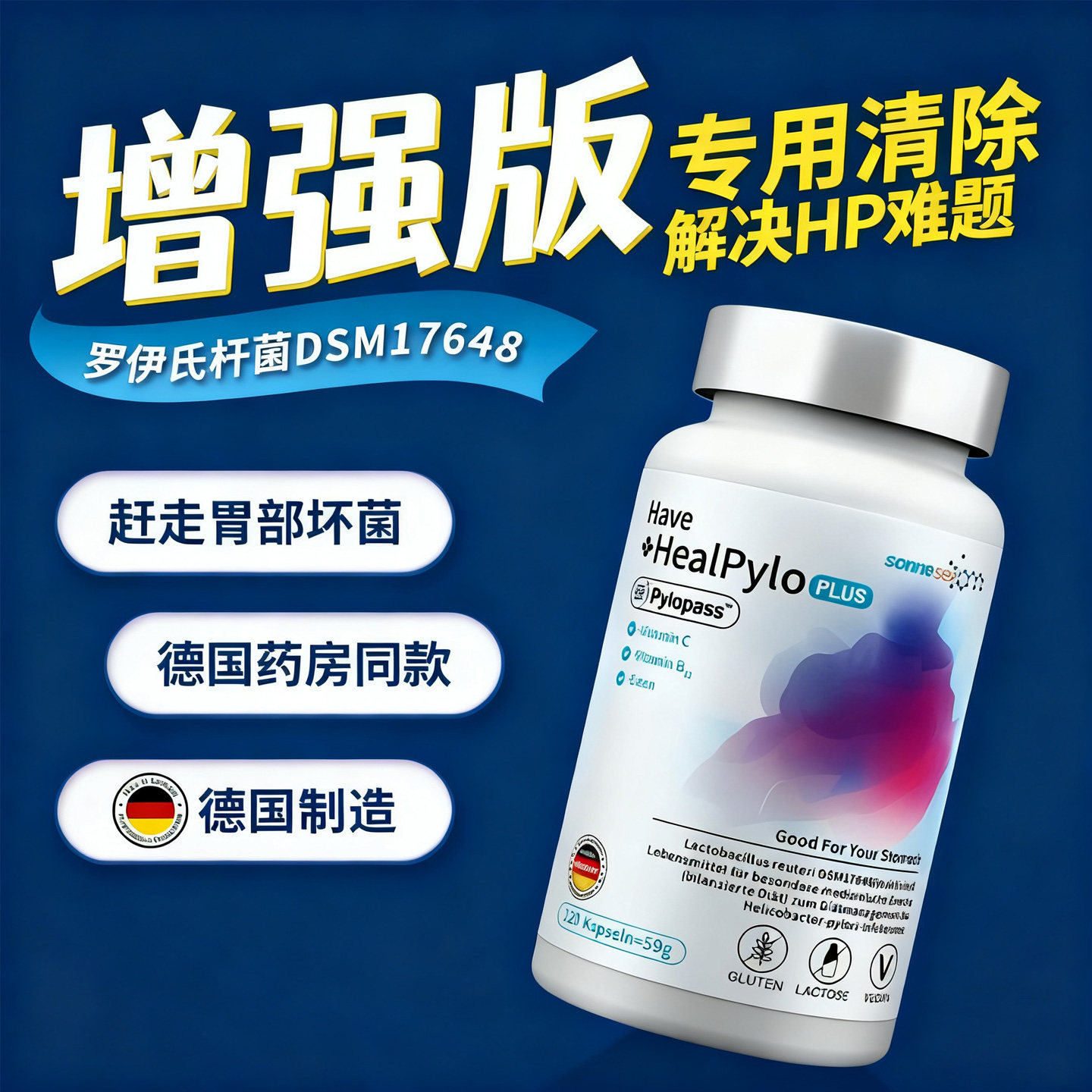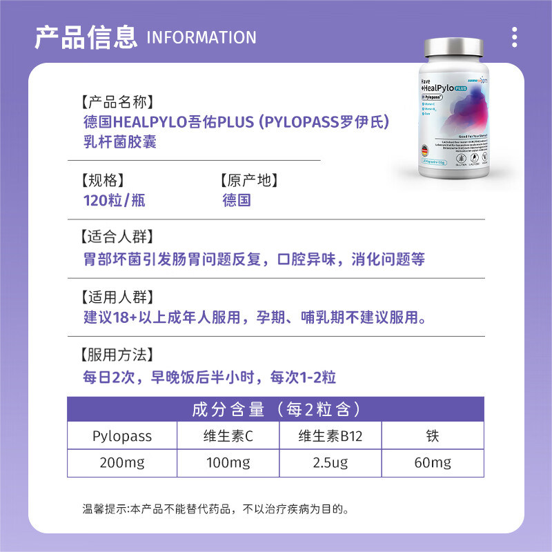📚 德国Pylopass罗伊氏乳杆菌dsm17648抑幽去口臭益生菌U门螺旋杆菌